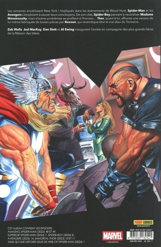 Les vampires envahissent New York ! Impliqués dans les événements de Blood Hunt, Spider-Man et les Avengers s'emploient à sauver leurs concitoyens. De son côté, Spider-Boy parvient à neutraliser Madame Monstruosity, mais d'autres problèmes se profilent à l'horizon... Thor, quant à lui, affronte une version de lui-même fabriquée de toutes pièces par Ronron, qui revendique être le vrai dieu du Tonnerre. Zeb Wells, Jed MacKay, Dan Slott et Al Swing inaugurent l'année en compagnie des plus grands héros de la Maison des Idées.