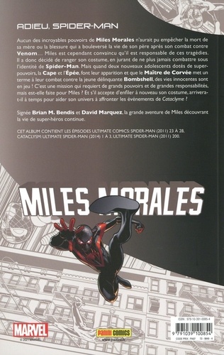 Aucun des incroyables pouvoirs de Miles Morales n'aurait pu empêcher la mort de sa mère ou la blessure qui a bouleversé la vie de son père après son combat contre Venom... Miles est cependant convaincu qu'il est responsable de ces tragédies. Il a donc décidé de ranger son costume, en jurant de ne plus jamais combattre sous l'identité de Spider-Man. Mais quand deux nouveaux adolescents dotés de super-pouvoirs, la Cape et l'Epée, font leur apparition et que le Maître de Corvée met un terme à leur combat contre la jeune délinquante Bombshell, des vies innocentes sont en jeu ! C'est une mission qui requiert de grands pouvoirs et de grandes responsabilités, mais est-elle faite pour Miles ? Et s'il accepte d'enfiler à nouveau son costume, arrivera-t-il à temps pour aider son univers à affronter les événements de Cataclyme ? Signée Brian M. Bendis et David Marquez, la grande aventure de Miles découvrant la vie de super-héros continue.