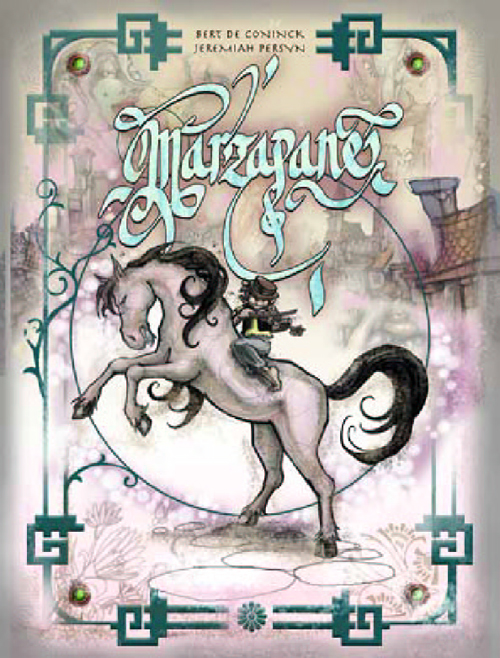 'Lang geleden, heel lang geleden, misschien wel eeuwen geleden leefde een prachtig paard. Zijn vacht had de kleur van roze champagne en zijn manen waren zwart als de muts van een kolenbrander. Zijn naam was Marzapane.' Marzapane begint dan wel als een klassiek sprookje, het verrassende verhaal schakelt al snel in een rotvaart. Want de tijd in dit sprookje gaat in galop! Ook voor gewezen droompaard Marzapane, ooit het paradepaardje van koningen en prinsessen. In een barokke en vaak bitse wereld, bol van praal en (schone) schijn, kan hij de ratrace niet meer bijbenen. De tijd is niet mals voor oude helden. Een roemloos einde in de rookworstenfabriek komt gevaarlijk dichterbij. Maar dat zal Marzapane worst wezen! Hij besluit zijn loopbaan een nieuwe boost te geven en klopt aan bij uitzendbureau Bullshit & Veneno ... Eigenzinnig sprookje over de angst van een paard om als worst te eindigen. Geïnspireerd op La Salsichafobia de Marzapane, een muzikaal sprookje van de naar Portugal uitgeweken kleinkunstenaar Bert De Coninck. Wervelend tekenwerk van de Brugse Gentenaar Jeremiah Jamz Persyn, wars van alle conventies!