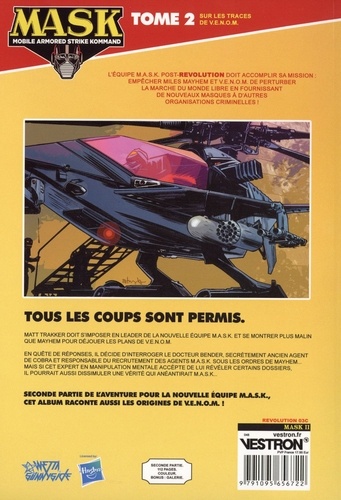 Les origines de V. E. N. O. M. : Alors que M. A. S. K. se trouve un nouveau repère à Miami, Trakker part dans une mission solo et croise le chemin du Dr. Mindbender qui lui apprend l'art du leadership et de la manipulation⦠mais Trakker découvre les plans tordus de son nouveau mentor et apprend la véritable histoire de ses ex-équipiers devenus les instruments de Miles Mayhem⦠Suite de l'histoire de M. A. S. K. version REVOLUTION !