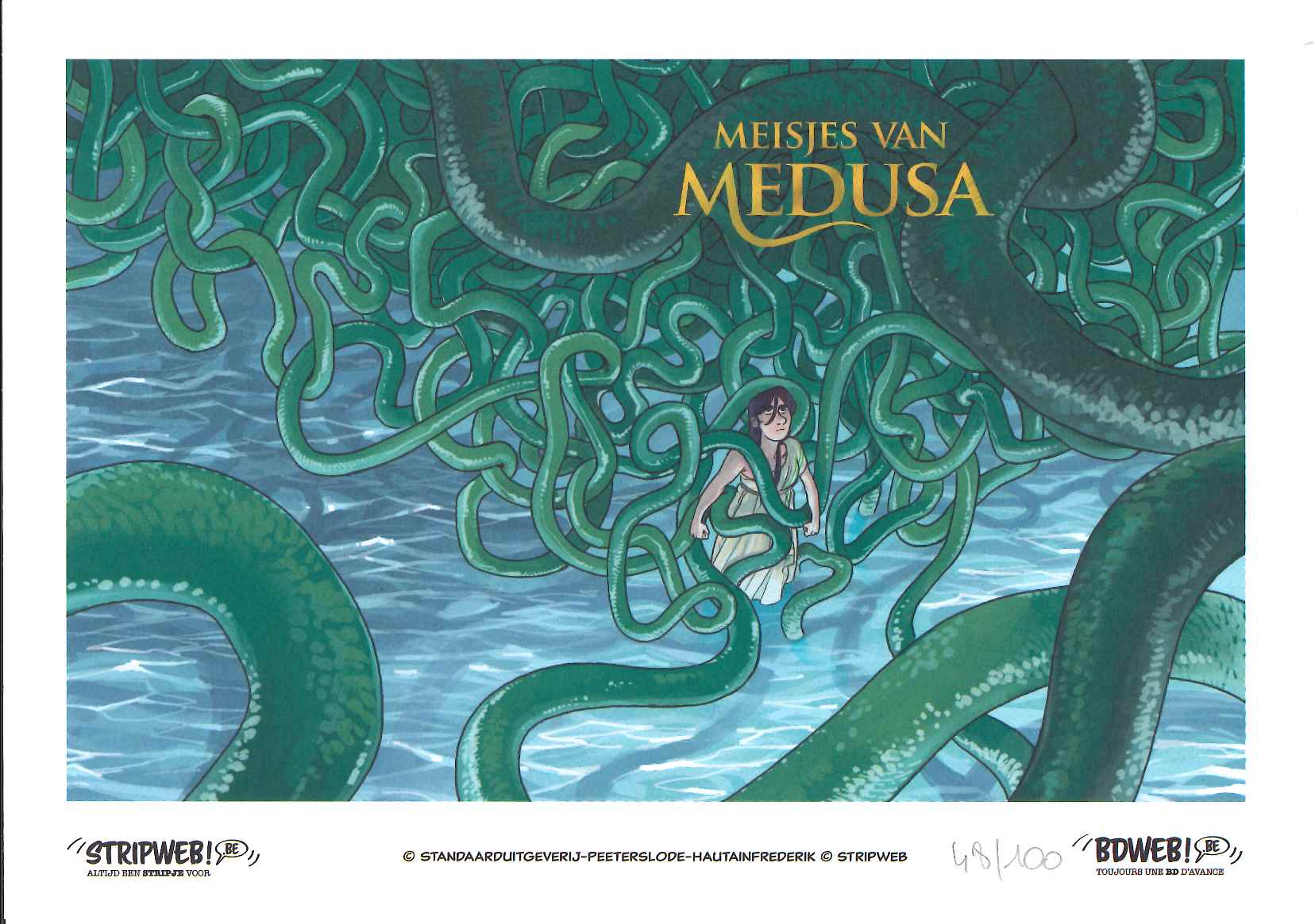 Speciale gelimiteerde stripweb versie met exclusieve stofomslag en genummerde ex libris. Daarbij komt tekenaar Peeters zijn deze versie signeren in onze winkel te Brugge op zaterdag 29 april. inschrijven via [email protected] Meisjes van Medusa is een graphic novel met scenario van Frederik Hautain; het is een coming-pf ageverhaal over een jonge balletdanseres op zoek naar zichzelf en haar seksuele identiteit. In haar zoektocht komt ze terecht in een mysterieuze sekte waar het vrouw-zijn volop gevierd wordt. maar hoe ver is ze bereid te gaan om zichzelf te vinden en haar oude leven op te geven???