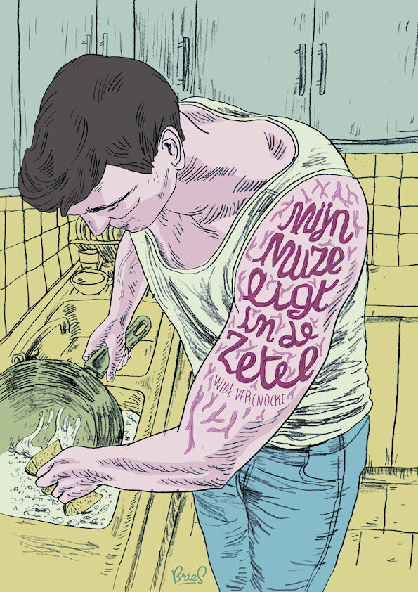 Een ironische autobiografische ode van de auteur aan zijn zetel. 'Mijn muze' is opgebouwd uit twaalf anekdotische scènes die quasi allemaal vertrekken van, eindigen in of zich afspelen rond de zetel. Het zijn twaalf absurde overpeinzingen over het zetelhangen - het bewust niets doen - in het leven en de fantasie van de auteur. Achter ledigheid kan een rijke innerlijke wereld schuilgaan, zo blijkt. Deze strip is een grafische gedichtenbundel waar illustraties, gedichten en beeldverhalen elkaar aanvullen.