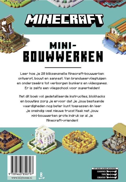 Leer hoe je 20 bliksemsnelle Minecraft-bouwwerken ontwerpt, bouwt en aanpast, van brandweervliegtuigen en onderzeeërs tot verborgen bunkers en videogames. Er is zelfs een vliegschool voor superhelden! Met dit boek vol gedetailleerde instructies, blokhacks en bouwtips zorg je ervoor dat je jouw bestaande vaardigheden nog beter kunt toepassen én leer je oneindig veel nieuwe trucs! Maak met jouw mini-bouwwerken grote indruk op al jouw Minecraft-vrienden!