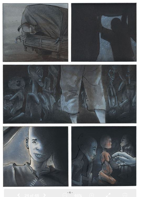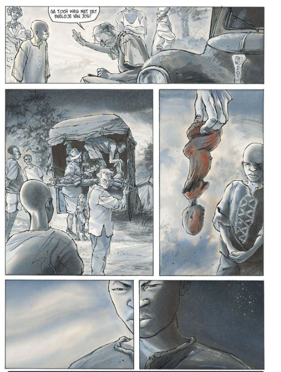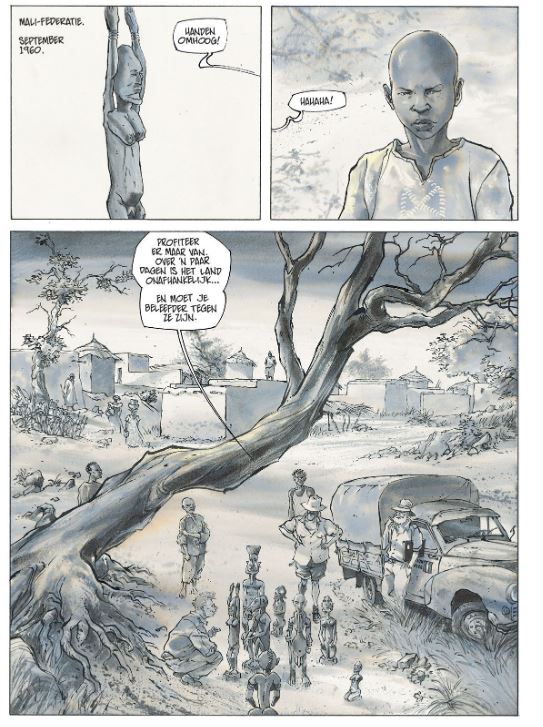 Moeder met Kind de nieuwe strip van LAX en wat voor een. Lax werd gevraagd om een strip te maken voor de collectie van het Louvre in 2015 en wou graag het thema van de migranten en hun lijdensweg in beeld brengen op een of andere manier. Na een toevallig bezoek aan een vluchtelingen kamp en wat gepraat met enkele vluchtelingen was zijn inspiratie nog meer aangevuld. Nu nog een link met het Louvre vinden. Op zoek in het Louvre naar een kunstwerk viel zijn oog op een werkje “ Une maternité Rouge” en nu moest hij nog een tweeling beeldje tekenen die een vluchteling naar Parijs zou moeten brengen. ( zie inhoud verhaal) LAX heeft er duidelijk heel veel research voor gedaan, hij heeft hiervoor ook naar Mali gereisd en dat zie je ook in de bijzonder intieme tekeningen, die perfect het gevoel weergeven alsof je er zelf aanwezig bent. De angst, desillusie, hoop, volharding, moed, passie, hardheid,… alles wat vluchtelingen meemaken komt in dit boek op een bijzonder aangrijpende, meeslepende wijze aan bod. Dit zonder afbreuk te doen om een spannend scenario die tot op de laatste bladzijde je in de ban neemt van de jonge vluchteling Alou en hoe het met hem zal aflopen. Een album dat ons doet nadenken over onze houding tov vluchtelingen, het belang en nut van kunst en vooral een bijzonder aangenaam leesmoment verschaft. Een boek dat blijft nazinderen…. Verschijnt in December Alou, een jonge Malinese honingjager, heeft een wilde bijenkorf gevonden in een baobab. Tot de tanden gewapende jihadisten rijden op hem af in een 4x4 en brengen de boom tot ontploffing. Tussen het puin vindt Alou een beeld van een zwangere vrouw, zo goed als intact. Op verzoek van zijn vader trekt hij naar Dogongebied om het te tonen aan de wijze van het dorp, de hogon, die door iedereen gewaardeerd wordt om zijn eruditie. De oude man herkent het beeldje meteen. Ze is volgens hem het werk van de meester van Tintam, waarvan al een eerste Moeder met Kind in het Louvre staat, in het Pavillon des Sessions. De oude man vermoedt dat het beeld, in deze tijd van barbarij, veiliger is bij haar zus in het Louvre dan in Mali. En Alou krijgt van de hogon, natuurlijk, de dringende missie de Moeder met Kind naar Parijs te brengen. Om zijn doel te bereiken, moet de jongeman heel wat risico’s nemen; een migrant tussen migranten, een jongen tussen broers en zussen die zijn lot delen, door woestijnen en over zeeën… Christian Lax brengt een geëngageerd verhaal, over hen die lijden onder geweld, ellende en oorlog en die onze kusten proberen te bereiken in de hoop op een beter leven....
