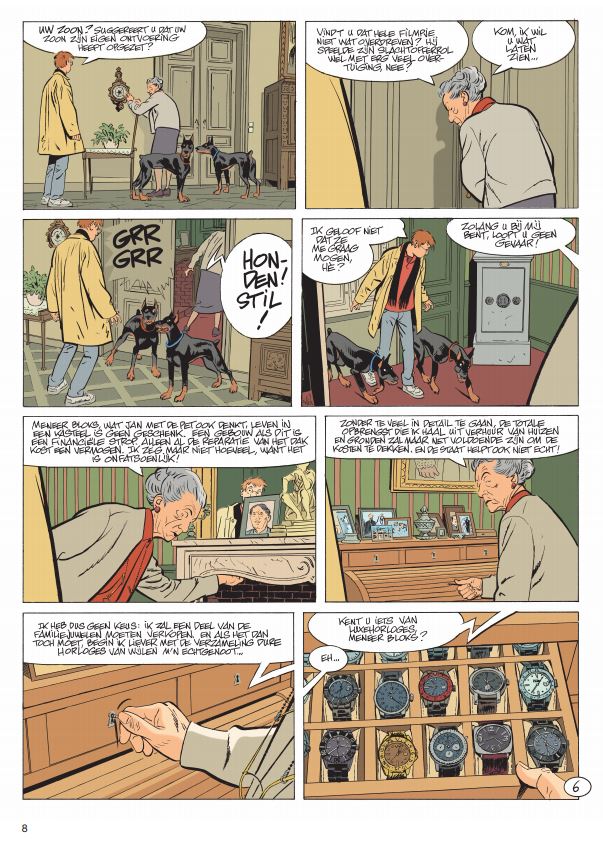 Hoe komt de auteur aan de naam van het hoofdpersonage? Oorspronkelijk kwam de naam van een engelse auteur die een boek schrijf '3 men on a boat' ( zie afbeelding) maar de achternaam moest van de Nederlandse Schilder komen Jeronimus Bosch. Dus in het Frans gaf dit Jerome K Jerome + Jérome Bosch = Jérome K. Jérome Bosch. Finaal werd dan Bosch vervangen door Bloch geïnspireerd door de auteur Robert Bloche, Amerikaans schrijver van ondermeer 'psycho'. Dus ja een heel complex verhaal maar nu weet je dit. Hoe de vertaling Bloks is geworden zal enkel te maken hebben met het feit dat het hetzelfde moest klinlen. Jerome heeft bijna spijt dat hij is ingestapt in de sportwagen van vader Arthur, wanneer die met open dak over de westelijke autostrade scheurt. Arthur vertelt hem dat een makker uit het kleine seminarie, vader Étienne, hem heeft aangeraden aan een zekere barones: Mevrouw Barbier de Conches. Ze zijn nauwelijks aangekomen in haar kasteel wanneer ze hun de video toont die ze de dag ervoor had ontvangen. Daarop is haar zoon, Gaëtan, geboeid aan iemand die om losgeld vraagt… Maar de autoritaire zeventigjarige is ervan overtuigd dat het opgezet spel is en vraagt dus aan Jerome om deze zogenaamde ontvoering te onderzoeken. Het 27ste avontuur van de meest onbezonnen detective van de Frans-Belgische strip! Alain Dodier blijft zijn papieren held tot leven brengen. Jerome K. Jerome Bloks heeft een speciaal plekje in het landschap van de detectivereeksen. Een opus dat alle liefhebbers van onderzoeken zal bevallen!