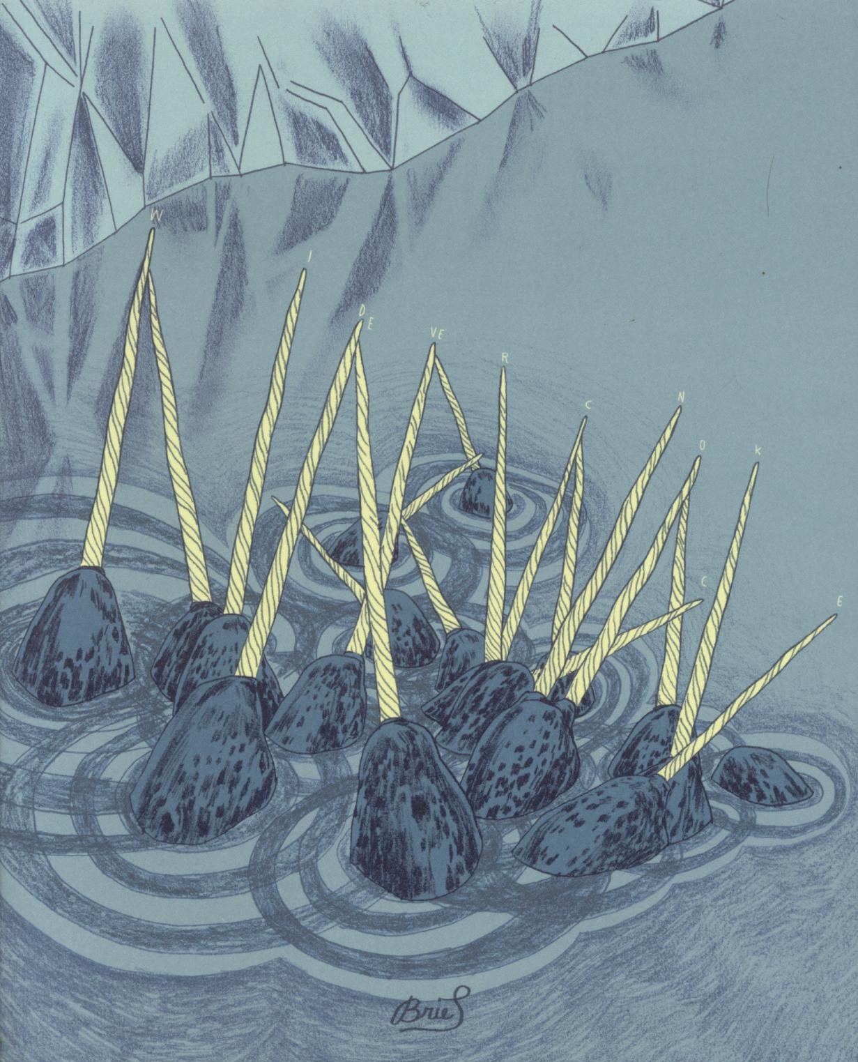 Een naïeve, introverte man met een succesvol doch kort verleden als speerwerper/tienkamper werkt als materiaalmeester bij een atletiekclub. De man aanbidt in alle stilte een van de hordenloopsters van de club. Op een bepaald moment komt hij in contact met een sjamaan. Die beweert met de kracht van de tand van de narwal de materiaalman te kunnen genezen van zijn blessure, zodat hij opnieuw kan sporten op het hoogste niveau en zo de hordenloopster kan imponeren. De materiaalman laat zich uiteindelijk overhalen door de sjamaan en gaat op zoek naar de mythische tand van de narwal in de Noordelijke Ijszee. 'Narwal' sluit in stijl, vorm en thematiek aan bij Vercnockes vorige strip 'Wildvlees'.