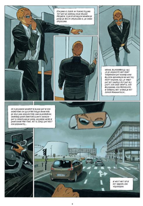 Gemiddelde score 5 / 5Zelfs in Patagonië weet de DGSE (Franse buitenlandse veiligheidsdienst) onze killer te vinden. Hij zal dus braafjes moeten meewerken en compromissen sluiten. Hij heeft nu een saaie kantoorbaan en werkt eigenlijk voor de overheid als... moordenaar. Hij wordt nu aangesproken als Denis en vormt samen met Barbara en Nicolas (ex-militair) een gevaarlijk trio. Barbara onderhoudt de contacten met de opdrachtgevers. Hun eerste contract wordt Nabil Jebbouri. Een ambtenaar op het stadhuis maar 's nachts importeur en dealer van drugs. Ook de meer dan corrupte burgemeester Marchand springt in het oog. Het gerecht staat machteloos maar als de rechtsstaat het niet meer kan oplossen heb je nog altijd Denis en Nicolas! We leren ook een term van de Israëli's kennen: Een negatieve behandeling (geheime liquidatie). De vrijscène met Lydie, collega van de dienst HR, gaat ook niet onopgemerkt voorbij. De politieagenten Eddy en Rodrigue hebben zo hun eigen mening over de bendeoorlog. Als burgemeester Marchand plots een grote kanshebber wordt voor de post van minister van Binnenlandse Zaken is het tijd voor actie. Jacamon en Matz hebben ons nog heel wat te vertellen! Laat de volgende cyclus maar komen.