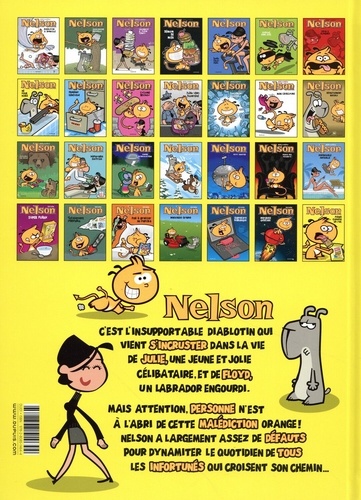 Nelson, c'est l'insupportable diablotin qui vient s'incruster dans la vie de Julie, une jeune et jolie célibataire, et de Floyd, un labrador engourdi. Mais attention, personne n'est à l'abri de cette malédiction orange ! Nelson a largement assez de défauts pour dynamiter le quotidien de tous les infortunés qui croisent son chemin...
