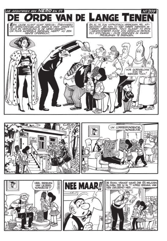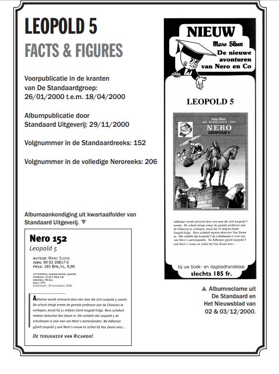 Toen in 1993 het Nero-album Barbarijse vijgen verscheen, stelde geestelijke vader Marc Sleen zijn nieuwe medewerker Dirk Stallaert voor aan zijn lezers. Tien jaar lang zou hij de avonturen van Nero in beeld brengen, terwijl Sleen zich toelegde op de scenario’s. Tot aan het einde van de reeks in 2002 zou Stallaert 42 Nero-verhalen tekenen, die nu door Matsuoka in een prachtige integrale worden verzameld. Integrale 8 bevat 5 verhalen: Leopold 5, De orde van de Lange Tenen, De Gulfstreum, De erfenis van Millaflotta en Kweetnie.