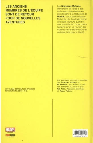 Les Nouveaux Mutants demandent de l'aide à des amis rencontrés récemment afin de partir à la recherche de Rocket, perdu dans l'espace. Mais très vite, le périple prend une autre tournure quand ils sont accusés de crimes contre l'empire shi'ar. La réunion des mutants se transforme alors en véritable lutte pour la liberté... Une aventure stellaire racontée par Jonathan Hickman et Ed Brisson, qui prend vie sur les planches illustrées par Rod Reis, Flavieno Armentaro et Marco Failla.