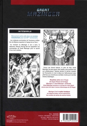 Les créatures survivantes de l'ancienne civilisation de Mykene repartent à l'assaut de la Terre ! Au moment où Mazinger Z est a terre, le valeureux Tetsuya Tsurugi fait son apparition aux commandes de Great Mazinger pour le sauver d'une mort certaine. Conçu par Kenzô Kabuto, le père de Kôji, Great Mazinger est plus grand, plus rapide, plus puissant que son prédécesseur. Tetsuya devient le dernier rempart de l'Humanité et c'est le début de l'affrontement sans pitié face aux monstrueux sentôjûs menés par le terrible Ankoku Daishôgun.