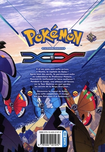 En route pour la région de Kalos pour une nouvelle grande aventure pleine de rebondissements ! X et ses amis sont enfin arrivés à Illumis, la capitale de Kalos ! Après bien des situations périlleuses, ils parviennent enfin au Laboratoire du Professeur Platane. Peuvent-ils réellement lui faire confiance ? Pendant ce temps, une attaque est lancée sur la Tour Maîtrise où sont gardés les secrets de la Méga-Evolution... Découvrez la région de Kalos avec cette adaptation en manga des jeux Pokémon X et Pokémon Y !
