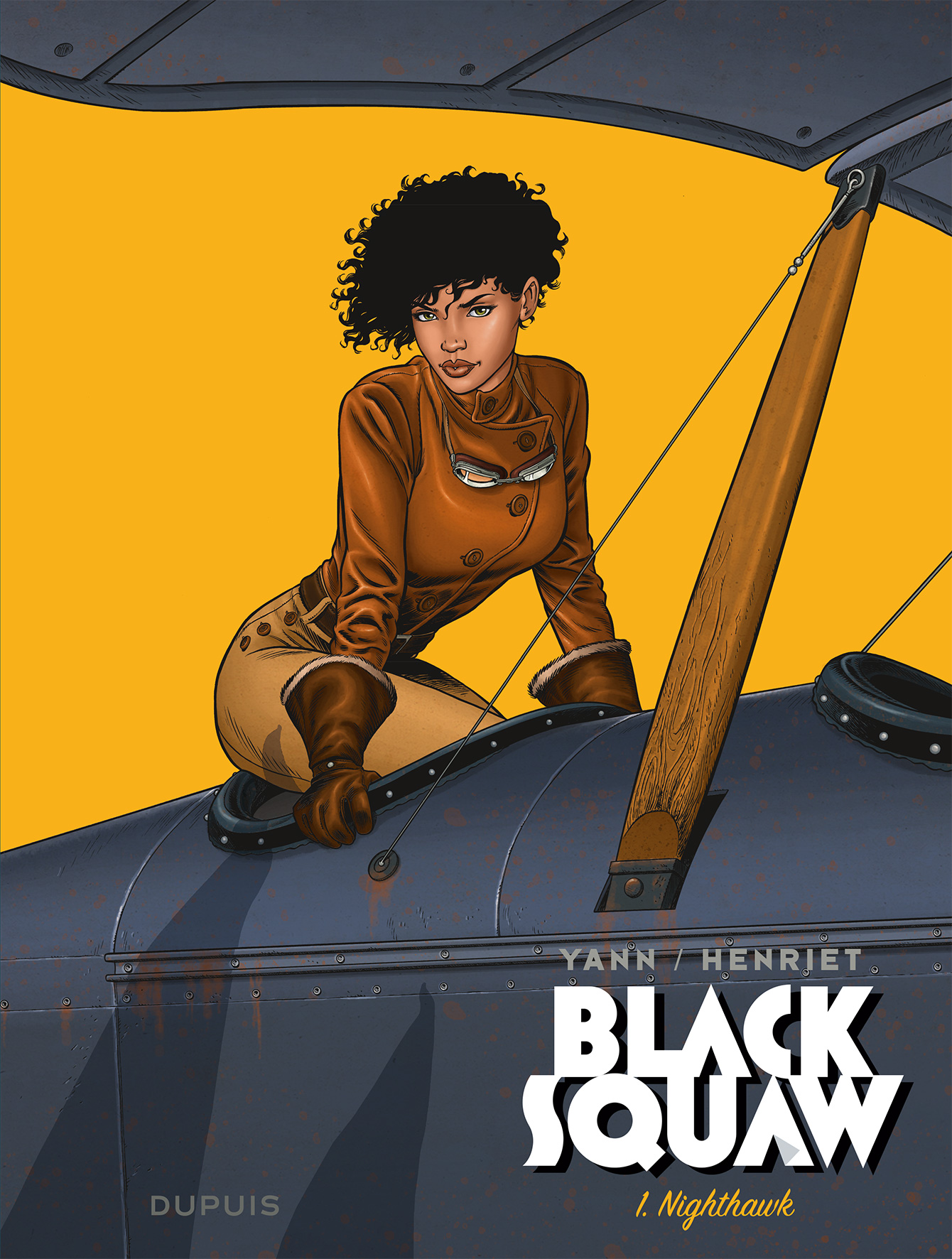 Tekenaar Henriet tekende ook volgende stripverhalen: 1. Damocles 2. Golden Cup 3. Berentand van de scenarist Yann die we kennen van oa deze stripverhalen 1. Angel Wings 2. Atom Agency ( uitverkocht we hebben er nog enkele) 3. De Jonge jaren van Thorgal 4. De nachtuil 5. De Onnoembaren 6. Edelweiss 7. Govert Suurbier 8. Pin-up 9. Thorgal ( de laatste delen ) 10. Savage en nog vele andere medewerkingen in reeksen als Robbedoes, Spoon en White, Yoni,.... BLACK SQUAW de nieuwe strip van Henriet en Yann de auteurs van Berentand. Terug een verhaal over een pilote, Bessie Coleman. een Afro-Indiaans-Amerikaanse die een obsessie voor het vliegen had, wetende dat het in die tijd ( jaren 20 ) bijna onmogelijk was voor iemand zoals zij. Daarenboven leefde ze in Texas waar de Ku Klux Klan de scepter zwaaide. Bessie kwam in dienst van Al Capone die tijdens de drooglegging alcohol kon laten overvliegen vanuit Franse eilanden niet ver van Canada. Maar natuurlijk niet zonder gevaar van de Amerikaanse kustwacht. Ook de Ku Klux Klan was in die periode oppermachtig, zelfs de toenmalig president was hen goedgezind, waardoor Bessie ook dit als extra gevaar bij krijgt. De tekenstijl is terug zeer fijn afgewerkt. Wat nieuw was voor Henriet is het tekenen van de paarden maar daar valt niet veel van te merken. De vliegtuigen daarentegen is wel zijn ding en hier laat hij Bessie vliegen in een Curtis Jenny JN-4. Tienduizenden hebben ze ervan gemaakt tijdens de eerste WO. Daarna werden ze verkocht voor een appel en een ei en bezat vrijwel iedere landbouwer er één om zijn velden te besproeien. Op echte feiten geïnspireerd maar toch fictie. Haar verhaal leest als een roman en er komen twee cycli van drie delen. En... Yann is reeds gestart met het scenario van het vervolg op Berentand... dus voor de liefhebbers die op de hoogte willen blijven van deze reeks schrijf je best in op de reeks berentand