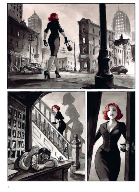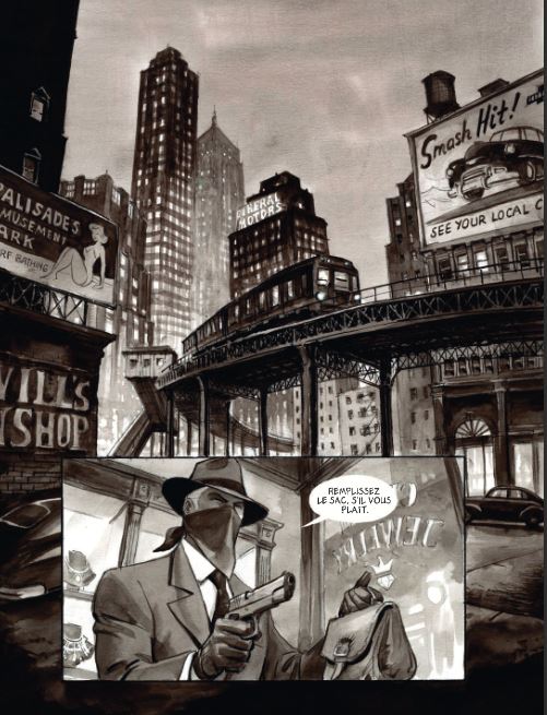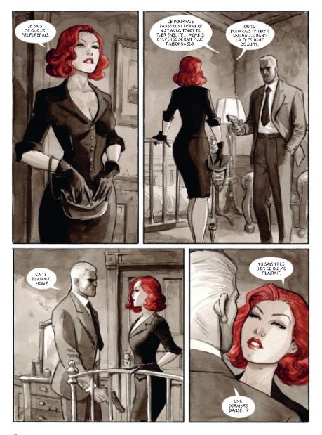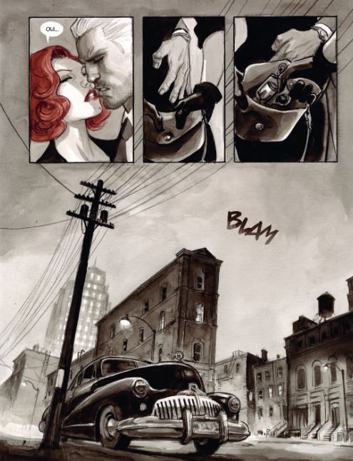 Gemiddelde score 5 / 5Wie Marini zegt, denkt meteen aan de reeksen ‘De schorpioen’, ‘De adelaars van Rome’ en ‘Gipsy’. Bij Noir Burlesque zorgt Marini zowel voor het scenario als de tekeningen en inkleuring. Hij wou hierbij de sfeer van de jaren ’40-’50 weergeven. Denk maar aan gekostumeerde heren met hoeden, de korsetten die de strakke tailles van de dames benadrukken, maar ook de blinkende wagens vol chroom, de sigaretten die hoogtij beleven,… Alles komt aan bod in dit eerste deel van een tweeluik. En of Marini de sfeer er weet in te houden? Ja ! Het verhaal begint in het heden als Slick (de gangsternaam van Terry) zijn verraadster Caprice (artiestennaam voor Debbie) zit op te wachten in haar appartement. Ooit waren ze een koppel, maar door omstandigheden is hun contact ongewild verloren gegaan waardoor Caprice nu werkt voor een nachtclub als danseres. Ze heeft een affaire met Rex, de eigenaar van de nachtclub. Echter heeft gangster Slick nog schulden bij Rex. Zo loopt Slick terug Caprice tegen het lijf en laait de passie tussen de 2 weer op. Maar dit is uiteraard buiten Rex gerekend, die de touwtjes strak in handen heeft… Over de tekeningen hoeven we niet veel woorden vuil te maken: die zijn top! Het album is opgemaakt in zwarte en grijze tinten, met hier en daar een streepje rood wat een extra dimensie geeft aan de sensualiteit van de lippen of het opspattend bloed letterlijk meer in de verf zet. Want de inkleuring gebeurt door middel van prachtige aquarellen, iets waar Marini heer en meester in is. Als ik al een minpuntje zou vinden, is het dat de karakters lijken op bvb. de Schorpioen of zijn vorige werken. Maar dat is eigen aan de stijl van de tekenaar, en deze stijl is gewoon van het bovenste niveau. Voor de liefhebbers: de Burlesque komt ook mooi aan bod - hoewel het meer een striptease is van Caprice - maar o zo prachtig gebracht door Marini. Het verhaal komt mooi op gang in dit eerste deel en doet je verlangen naar het vervolg. Marini mag dit van mij meer doen, dit is een pareltje geworden en behoort zeker tot de betere albums van dit (na)jaar !