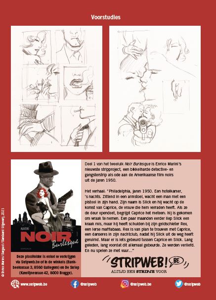 KAN NIET AFZONDERLIJK BESTELD WORDEN!!!!!!!!! Stripweb uitgave met exclusief beeldmateriaal van het album Noir Burlesque van Marini die op 24 november verschijnt. Gratis te verkrijgen : - bij de aankoop van de strip Noir Brulesque - bij iedere aankoop vanaf 29 euro. opgepast beperkte oplage