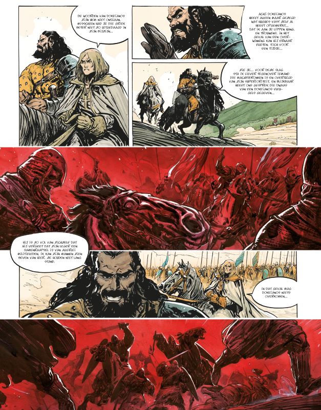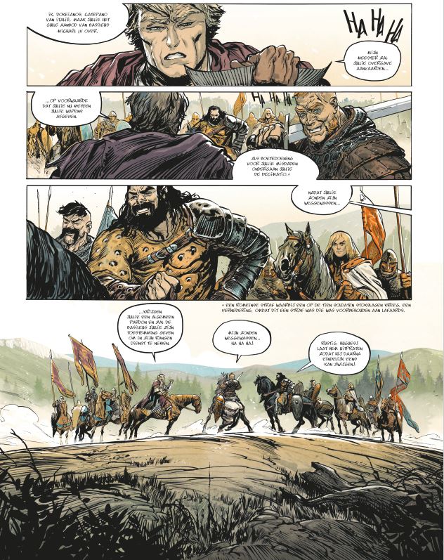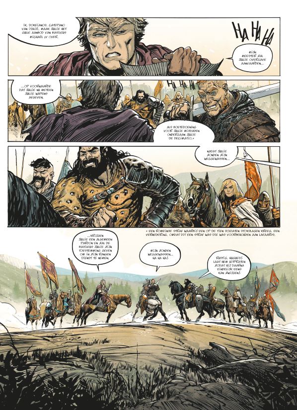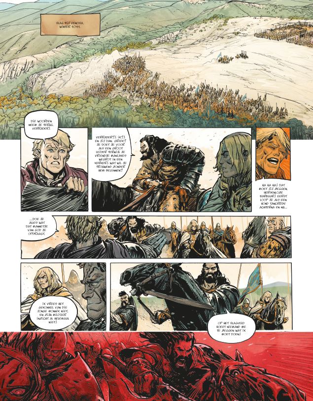 Het Eerste deel van de tweede cyclus. Wat deden de Noormannen in Zuid-Italie? De slag bij Venosa. Na Sicilië maakt Zuid-Italië nu kennis met de Normandische aanvalsdrift. Nieuwe Normandische huurlingen sluiten zich aan bij de troepen van Guillaume de Hauteville, gelokt door de verhalen over hun exploten. Zij brengen het Byzantijnse leger, geleid door kapitein Dokeianos, een verpletterende nederlaag toe. Basileus Michaël IV neemt radicale maatregelen om die vijand het hoofd te bieden. Hij laat Maniakes uit de kerkers halen en zet hem aan het hoofd van zijn leger. Maniakes is een brok haat en is vastbesloten zich te wreken. De Kerk vindt het machtsvertoon van de Normandiërs maar niets, maar kan de Byzantijnse nederlagen wel waarderen. Étienne krijgt als vertrouweling van Guillaume de opdracht ervoor te zorgen dat het Normandische leger geen nieuwe bedreiging wordt voor het christelijke geloof. Tancrède trekt, op zijn beurt, opnieuw ten strijde aan de zijde van Harald, die zijn oude vriend maar een zwakkeling vindt. Er dreigt weer strijd tussen Normandiërs en Byzantijnen, listen en intriges zijn niet van de lucht… Scenarist Vincent Brugeas is ook bekend van WO II-strip The Regiment.