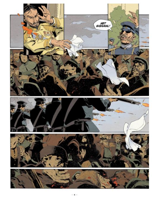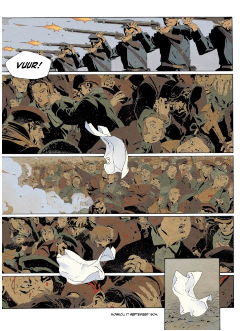 Gemiddelde score 5 / 5Moord op de tsaar Dit tweeluik verschenen al in 2014/2015 bij Dargaud maar raakte nooit vertaald, in 2019 volgde een integrale uitgave als “Moscou année zéro”. Dark Dragon Books vertaald nu deze integrale maar wel met de oorspronkelijke titel. Een beetje vreemd dat Dargaud het zelf niet nodig vond om dit verhaal te vertalen want Fabien Nury heeft als scenarist toch al zijn strepen verdient met kleppers als “Katanga”, “Tyler Cross”, “Keizerin Charlotte” of “De dood van Stalin”. Net zoals die laatste speelt ook dit verhaal zich af in Rusland, maar dan begin twintigste eeuw, toen de Tsaar nog de plak zwaaide. Ook tekenaar Thierry Robin is weer van de partij. Eigenlijk is de titel een beetje misleidend, want het is niet de tsaar die slachtoffer wordt van een aanslag, maar wel zijn oom die gouverneur generaal is van Moskou. Moskou september 1904, voor het paleis van de gouverneur-generaal Sergei Alexandrovich troept een menigte samen, ze zijn ontevreden en beginnen hem te bekogelen met stenen en rotte groenten. Als Sergei zijn zakkendoek laat vallen opent het leger zoals afgesproken het vuur op de menigte, het wordt een echt bloedbad. Maar liet Sergei zijn zakkendoek per ongeluk of met voorbedachten rade vallen? Sergei lijkt het zelf niet te weten, maar het bezegelt wel zijn lot want voor de Sociaal-Revolutionaire partij moet hij sterven! De prachtige cover vat het verhaal mooi samen, we zien op de achtergrond een woedende menigte, met daarnaast de close ups van de twee belangrijkste protagonisten: eerst is er de bange goeverneur-generaal , daarnaast de booskijkende “Georgi”, de schuilnaam van de man die de aanslagen beraamde. Het kleurgebruik van Claire Champion is meebepalend voor de sfeer, al na enkele prenten, als Sergei zijn zakdoek laat vallen, primeren donkere kleuren, pas aan het einde van het verhaal, als Sergei weer meer hoop lijkt te krijgen, keren de heldere kleuren terug. Fabien Nury schotelt ons een spannend verhaal voor dat deels gebaseerd is op waar gebeurde feiten. Het verhaal springt weg en weer tussen Sergei en Georgi. Sergei probeert zijn eigen daad te begrijpen en probeert aan zijn lot en verantwoordelijkheid te ontkomen maar dat is buiten de Tsaar gerekend. Sergei leeft in een cynische wereld waar men de schuld van alles op de joden wil schuiven om zich niets van het leed van het gepeupel aan te moeten trekken. Daartegenover staat Georgi, de leider van een terroristencel, een allegaartje van mensen die hun eigen redenen hebben om te revolteren. Samen met zijn helpers organiseert hij aanslagen en probeert hij uit de handen van de gevreesde Ochrana, de geheime dienst van de tsaar te blijven. Het is een hard verhaal geworden waar er niet veel plaats is voor de romantiek en de ideologie van revolutionairen. Het biedt ook een ontluisterend beeld op de hautaine wijze waarop de tsaar de problemen aanpakt! Een topstrip!