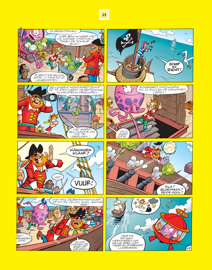 Oktoknopie viert feest. Dit jaar bestaat de roze-paarse duizendpoot en alleskunner namelijk 25 jaar. Jopie, zijn hond Dopie en Oktoknopie verschenen in 1985 voor het eerst in jeugdblad Taptoe en hebben in die periode (Taptoe stopte in 2009) bij miljoenen kinderen een glimlach op de gezichten getoverd. Dit album bevat daarom naast de strips een uniek dossier met uitleg van tekenaar Gerard Leever. Oktoknopie 6 is een perfecte afsluiter van een van de leukste jeugdstrips van de afgelopen vijfentwintig jaar.