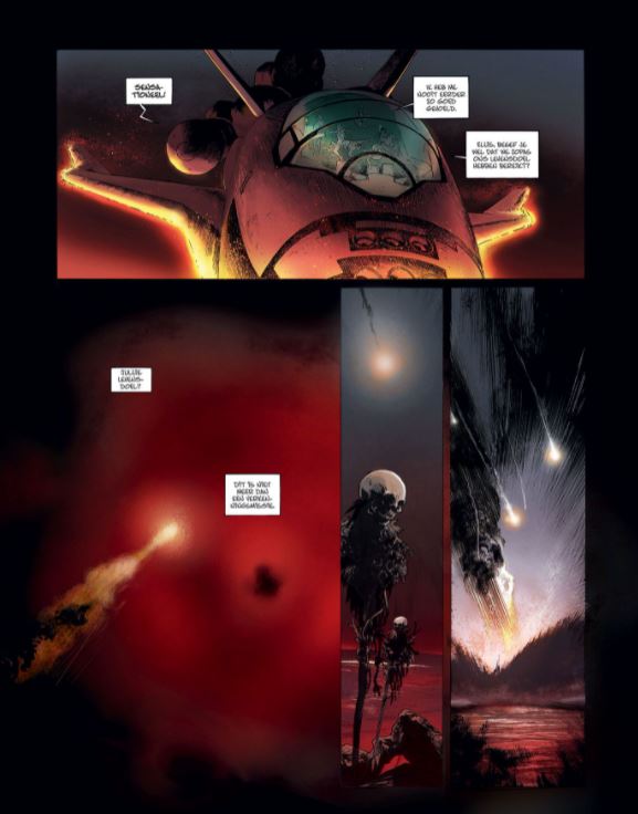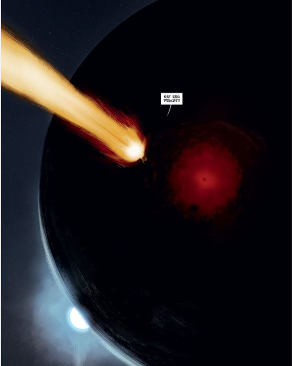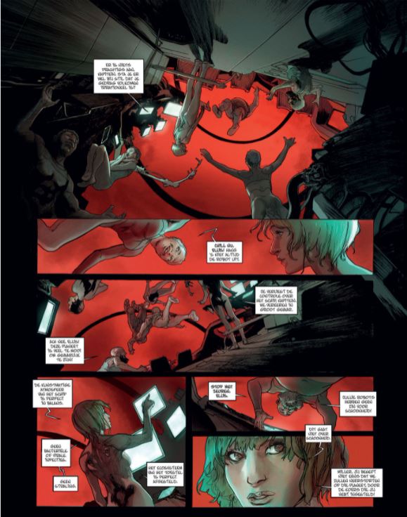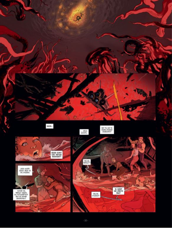 Gelimiteerde Hardcover verschijnt ook in softcover LET OP MAAR 3 EXEMPLAREN! OP=OP Striptekenaar De Rochebrune kennen we van volgende stripreeksen of delen van deze stripreeksen die hij tekende De Orde van de Drakenridders Michelangelo Waar sprookjes vandaan komen Bajram is deze keer scenarist en kennen we ook als tekenaar van volgende reeksen of aan een deel hiervan die hij tekende Cryozone Drie Christussen Experience Death Universal War Spiegelingen Valerie Mangin, echtgenote van Bajram schreef mee aan volgende reeksen Alex Senator De Gesel Gods De laatste Trojaan De Roofdierenclub Liefde in Oorlogstijd Tristan Luxley Jack Cool Spiegelingen Op een moment van waanzin stort een klein ruimteschip op een verkenningsmissie neer op een onbekende oceaanplaneet. Gelukkig helpt een soort gigantische octopus de vijf overlevenden om naar de oppervlakte te komen en het enige eiland aan de horizon te bereiken. Tot hun verbazing worden ze aan de kust begroet door mensen die even primitief als welwillend zijn. Als deze mannen en vrouwen met een bevroren glimlach kannibalen blijken te zijn, blijft het meest verontrustende hun totale volgzaamheid. Naarmate het verhaal verder loopt blijken er verschillende groepen te zijn die allemaal net zoals slaven zeer volgzaam zijn... wat steekt hierachter? Zijn de schipbreukelingen ook veroordeeld om zich te onderwerpen aan de wil van het mysterieuze Grote Geheel?