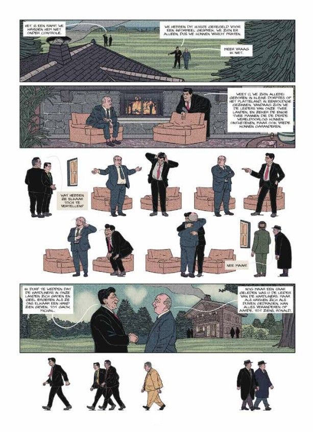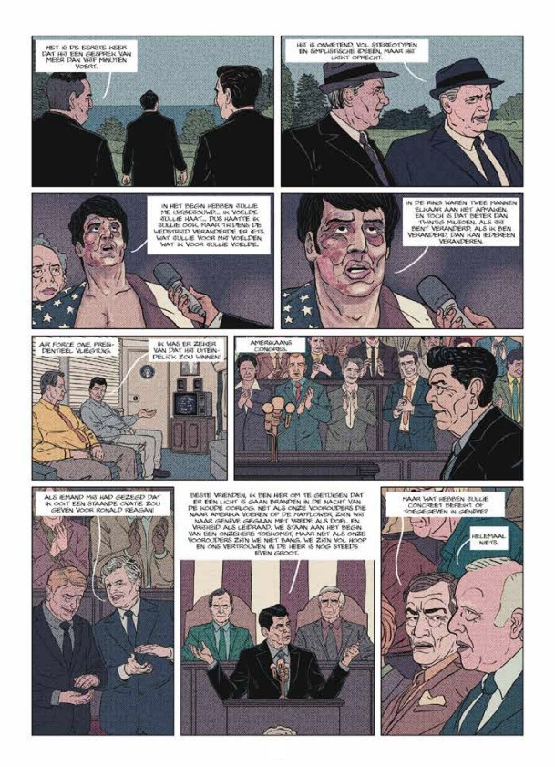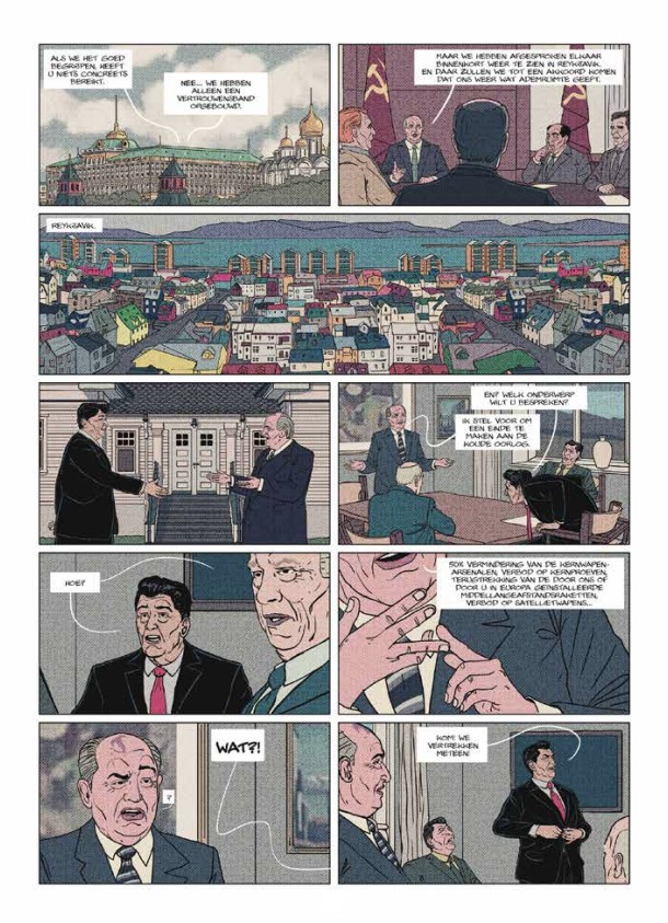 Het album van 64 pagina's verschijnt in september bij Saga Uitgaven. Hieronder kan je de eerste 7 pagina's lezen. En dit is de korte inhoud: "In 1980 wordt de voormalige westernacteur Ronald Reagan tot president van de Verenigde Staten gekozen. Reagan kan zich niet concentreren, heeft weinig grip op zijn dossiers, houdt van uitslapen en dutjes en brengt zijn weekenden door op zijn ranch in Californië. Hij is niet bepaald een harde werker. Daar staat tegenover dat hij een communicatietalent is, die grappen maakt — hij verzamelt ze en leert ze uit zijn hoofd — en zo overkomt als een sympathieke president. Zijn ongefilterde gedrag brengt Gorbatsjov van zijn stuk, die alleen nog met Reagans adviseurs wil onderhandelen. Maar dat maakt niet uit. Reagan presenteert zich als de grote winnaar en als de man die de Koude Oorlog heeft gewonnen..."