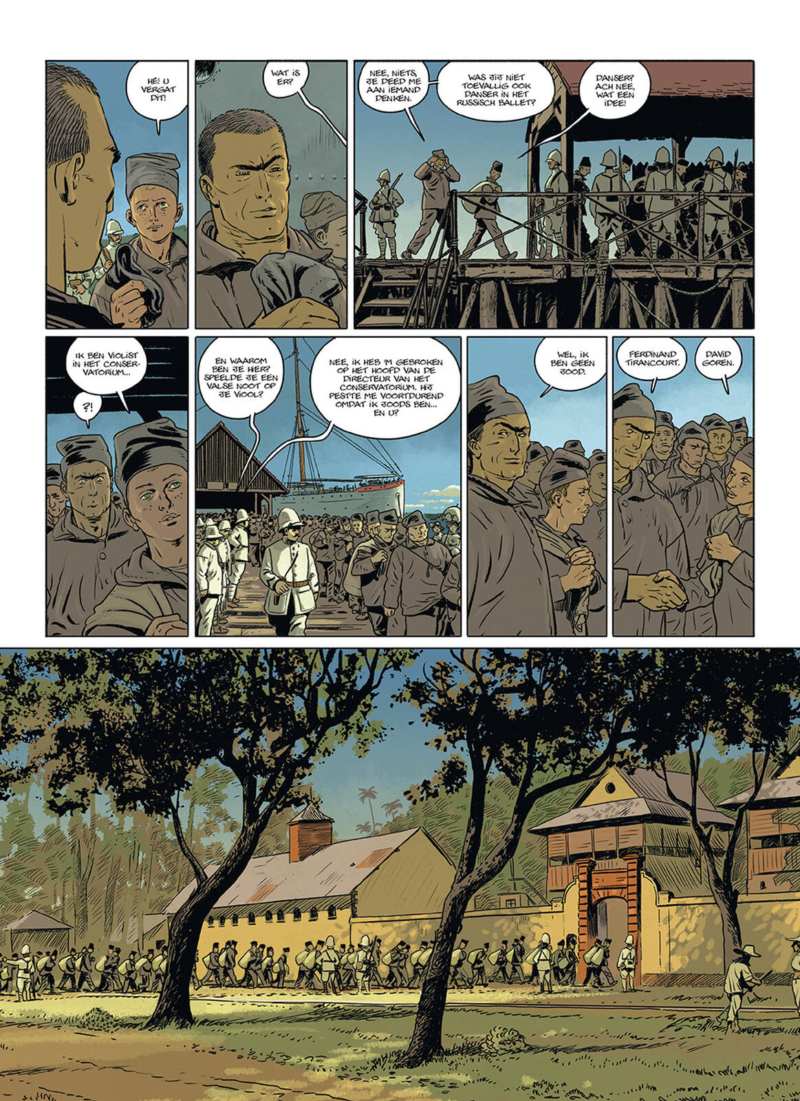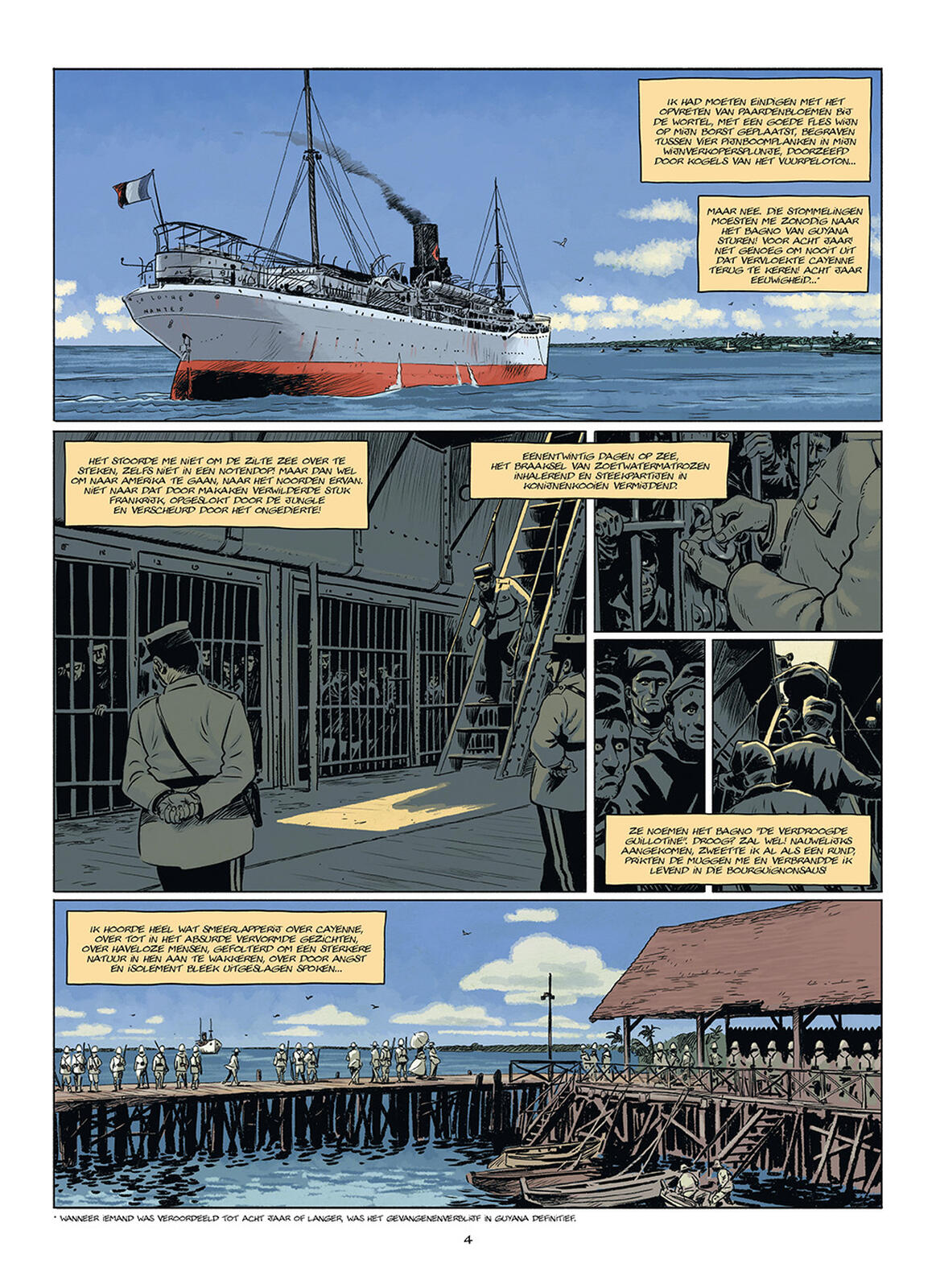 Oorlogscrimineel is het vervolg op Oorlogswijn, maar beide delen kan je los van elkaar lezen. In dit verhaal moet Ferdinand boeten voor wat hij in het vorige album heeft gedaan. Weg van het oorlogsfront krijgt hij in Oorlogscrimineel te maken met een ander soort mede- en tegenstanders in een verhaal dat wat doet denken aan de verfilmde roman Papillon. 'Na zijn tegenslagen in de loopgraven belandt Ferdinand Tirancourt in het bagno van Cayennes. Hij moet er een lange en definitieve straf uitzitten bij andere weerspannigen wier dagelijks leven hij moet delen. Hij wordt naar het verschrikkelijke boskamp van Charvein gestuurd dat voorbehouden is voor keikoppen. Een bewaker kan hem niet luchten en hij schept er genoegen in Ferdinand te pesten. Dat is echter niet wat Ferdinand het meest verontrust. Er is een andere, vreemde en stille gevangene die zijn kleinste bewegingen lijkt te bespieden.'