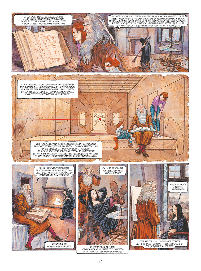 Met gratis Kunstdruk voor de snelle beslissers Een meisje ontdekt samen met haar guitige kat de grotten van Lascaux, de vliegende machines en de Mona Lisa van Leonardo da Vinci, de Sixtijnse kapel van Michelangelo, het konijn van Dürer en de Meniñas van Velazquez. Verder kruisen ze ook nog het pad van Bruegel, Rubens, El Greco, Rembrandt en Vermeer. Op reis door de schilderkunst is een betoverend tweeluik, magistraal in beeld gebracht door Gradimir Smudja (Vincent en Van Gogh). Gradimir Smudja tekende deze reis door de kunstgeschiedenis op scenario van zijn dochter Ivana!