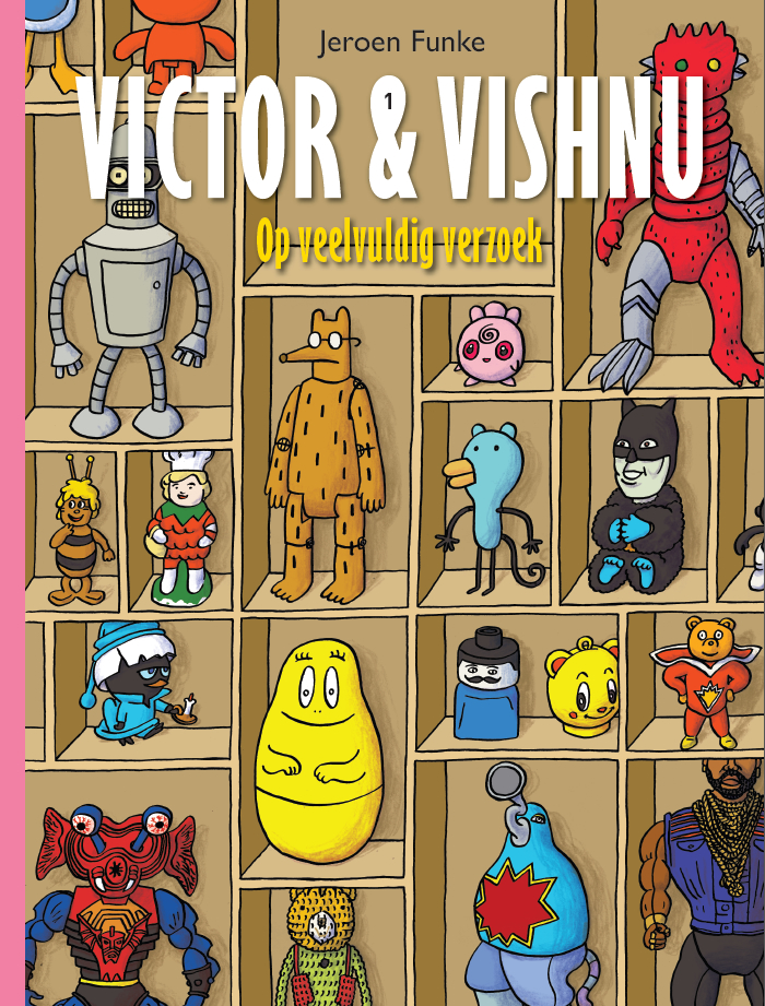 Viktor & Vishnu zijn een beer met een bril en een half vogel, half aap. Ze kruipen in de huis van astronauten, monsters, zombies, Jim Henson en Zorro. Ze spelen Super Mario, badminton en RISK. Ze eten soep, drop, chocolaatjes en boterhammen met pindakaas. Ze vechten met draken en springen over uitbarstende vulkanen. Ze ontmoeten grootheden als Napoleon, Silver Surfer, God en The Beatles. Maar niets daarvan zit in dit album, dat doen ze allemaal in hun vrije tijd. Jeroen Funke is lid van het striptekencollectief Lamelos. Hij zit ook in de redactie van kindertijdschrift Boekie Boekie. In 2011 won hij met een strip uit dit album de Jan Hanlo Media-essayprijs.