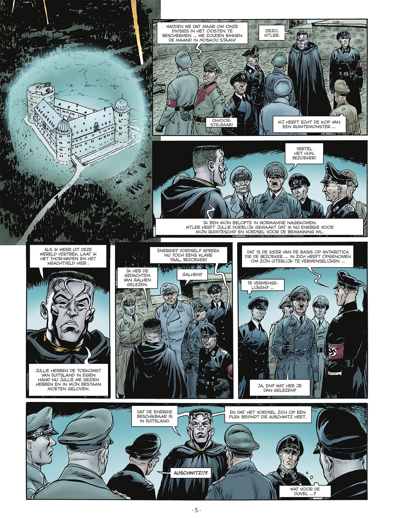 Churchill is net ontsnapt aan een gevallen V2 op Londen en de aarzelingen over de roekeloze aanval op Wewelsburg zijn weggevaagd. Het is een race tegen de klok die begint. De Bezoeker heeft eindelijk uitgelegd wat hij van de Duitsers verwacht, een nieuwe gruwel moet binnenkort de Nieuwe Auschwitz overkomen. Komt de vliegende atoombom van operatie Gomoreh aan om de kaarten op tijd terug te veroveren? ... Vervolg van de populaire vliegtuigserie van het duo Maza en Nolane!