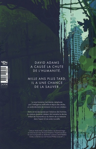 David Adams a causé la chute de l'humanité, mille ans plus tard, il a une chance de la sauver. La race humaine s'est éteinte, éradiquée et remplacée par l'intelligence artificielle depuis des siècles. Chloé, l'androïde créée par David Adams il y a bien longtemps, tente de ramener à la vie son créateur. Dans ce monde apaisé par l'absence des hommes, la créature devenue créateur doit remettre David sur le chemin de sa mémoire pour qu'une nouvelle forme d'humanité puisse espérer voir le jour. Naître à nouveau dans un monde si différent et dans lequel sa place n'est pas admise fera-t-il de David le sauveur d'une race qui vacille pourtant depuis la nuit des temps entre la vie et la mort ? Naviguant avec brio entre La Planète des Singes de Pierre Boule ou Niourk de Stefan Wul, Origines inverse les rôles sur les origines de la vie dans un récit de science-fiction bio punk explorant l'hubris et l'arrogance humaine. Créé par une équipe d'hommes de cinéma Arash Amel ( A Private Wa r), Joseph Oxford ( Me + He r), Toland Krieger ( The Age of Adaline ) et scénarisé par Clay McLeod Chapman, Origines bénéficie du trait incomparable du dessinateur Polonais Jakub Rebelka ( Judas , Le Dernier Jour de Howard Phillips Lovecraft ...).