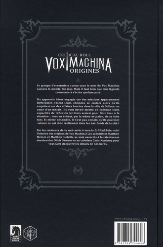 La bande d'aventuriers connus sous le nom de Vox Machina sauvera le monde. Un jour. Mais avant d'en arriver là, il a bien fallu qu'ils commencent quelque part... Une mystérieuse malédiction sévit dans la ville côtière de Stilben. Six héros en herbe venus d'horizons différents voient leurs chemins se croiser alors qu'ils enquêtent sur des évènements douteux. S'ils commencent par se battre entre eux, ils devront très vite rassembler leurs armes et leurs têtes pour comprendre ce qui se passe ... et éviter de se faire tuer par la même occasion.