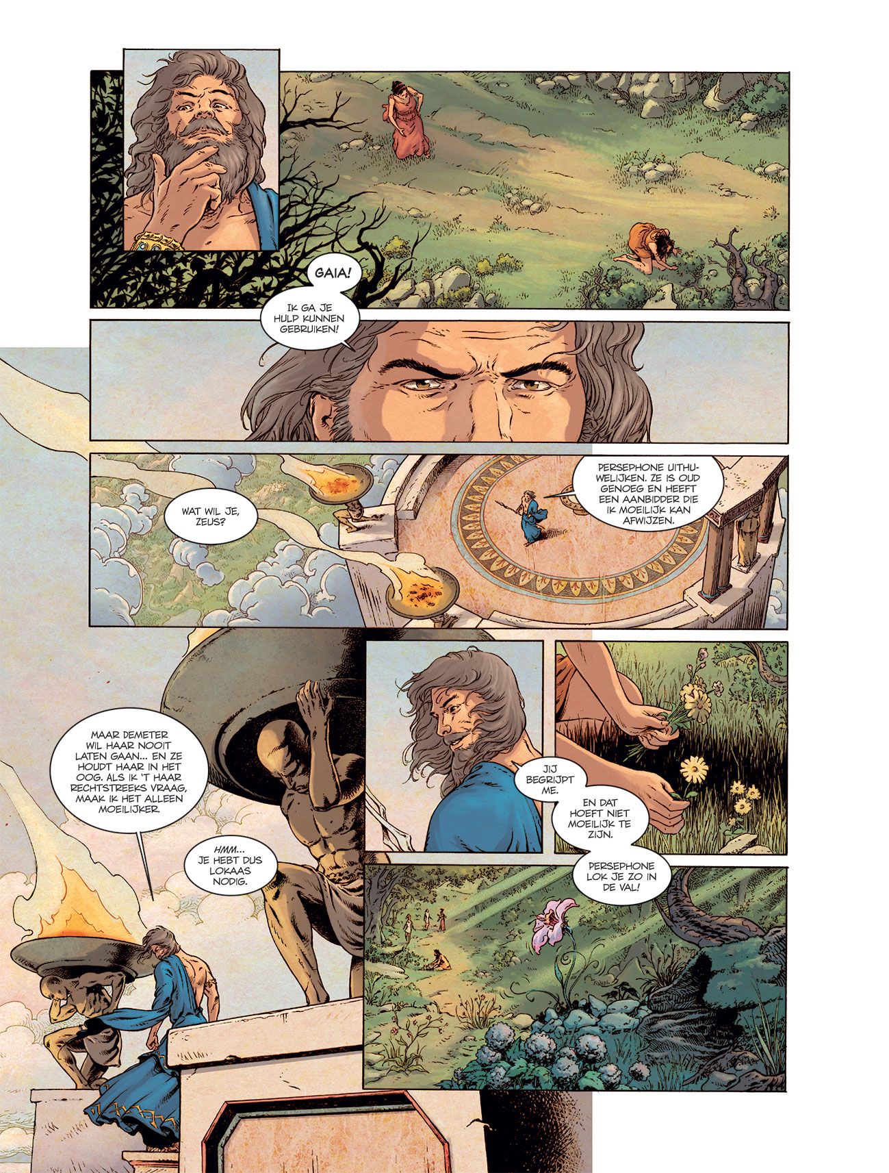 Striptekenaar van dit deel is de jonge Italiaan Oddi Diego (°1978) die in de reeks de wijsheid van de mythes nog heel wat andere delen ook zal tekenen. Wist je dat alle covers getekend zijn door Fred Vignaux de nieuwe tekenaar van Thorgal. De grote Griekse verhalen in een reeks stripverhalen die trouw blijven aan de originele teksten • Twee verhalen over liefde: moeder-dochterliefde, en de liefde die echt alles overwint, toch? gelimiteerde hardcover Spectaculaire epen, almachtige goden, formidabele gevechten met dieren, uitzonderlijke helden… De Griekse mythologie is een onuitputtelijke bron van wonderlijke en spannende avonturen, die tegelijk ook ongelooflijke lessen in wijsheid bevatten. Op die manier wordt ze trouwens over de hele wereld onderwezen en maakt ze nog steeds deel uit van onze schoolprogramma’s. De seizoenen? Dat hebben we te danken aan de mythe van Demeter en Persephone, en de ontvoering van Persephone door Hades… en met Orpheus en Eurydike maken we kennis met een (dramatisch) iefdesverhaal, Romeo en Julia uit de Oudheid. Zou jij ook niet álles doen voor je geliefde?