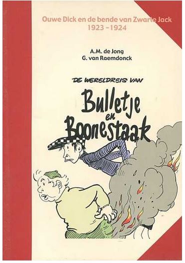 De levertermijn van de boeken van Uitgeverij Boumaar (indien we ze niet op stock hebben) is iets langer dan gewoonlijk. Gelieve hiermee rekening te houden. Alvast bedankt voor uw geduld. Bulletje en Boonestaak begonnen hun carriëre in 1922 en die duurde tot 1937. 44 Avonturen werden in de socialistische krant voorgepubliceerd en 19 verhalen kwamen in vijf verschillende periodes uit in boekvorm: in oblonbundelingen in de twintiger jaren, op pocketformaat in de jaren dertig (kleine gebonden harde kaften – pocket werd pas na de oorlog als benaming ingevoerd), weer oblong in de jaren vijftig en daarna op comic-formaat met een geheel nieuwe lay-out in de jaren zestig en zeventig. Met deze Boumaar-reeks is begonnen, daar waar andere uitgevers ophielden: bij verhaal 20 en afgemaakt tot de laatste strook. De complete uitgavenreeks is na 14 jaar werken nu beschikbaar. De Jong en Van Raemsdonck waren vrienden zoals Bulletje en Boonestaak waren in hun avonturen. Waarschijnlijk kun je De Jong vergelijken met Bulletje: een lawaaipapagaai die barstte van de energie en ideeën, streken uithaalde en verhalen kon vertellen als geen ander. ‘t Leverde de beste en meest humoristische verhalen op tot Franquin die met Guus Flater evenaarde. In alle 44 delen worden stukjes uit die periode, anecdotes van beide heren en tijd waarin zij leefden, besproken. Nu, na 95 jaar nog altijd een ‘must’ om te lezen. Opmerking c.q. waarschuwing: de strip bevat blote billen, grof taalgebruik en duidelijke stellingnames tegen ieder geweld, dat door De Jong en Van Raemdonck duidelijk en afschrikwekkend in beeld is gebracht. zwart/wit