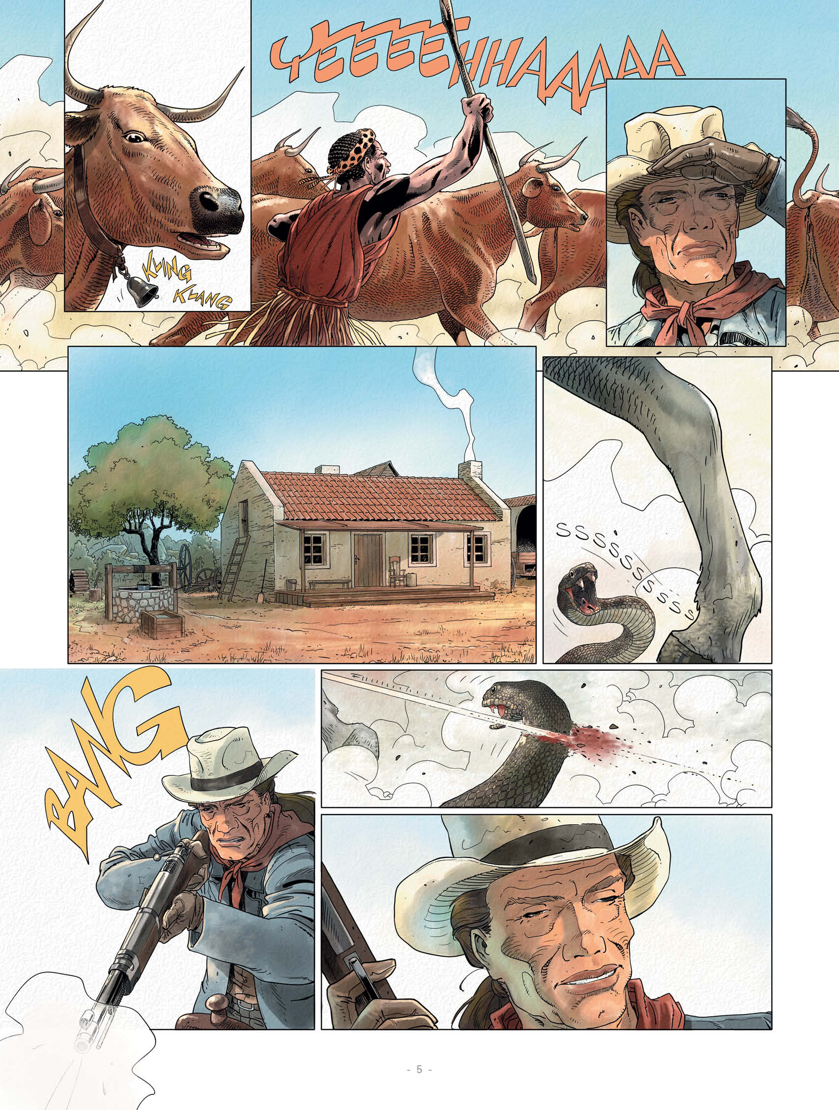18/06/2024 Volg de belevenissen van een groep avonturiers die op zoek zijn naar een mythische schat uit de Tweede Boerenoorlog. Grote open ruimtes, Zulu-magie, gepantserde treinaanvallen en woeste ritten op een onbekend continent staan op de agenda van deze atypische Zuid-Afrikaanse western! Pit, een voormalige Amerikaanse cavalerie-officier, en Ortzi, een Baskische anarchist, komen begin 20e eeuw aan in zuidelijk Afrika. Paul Kruger is op dat moment president in ballingschap van de republiek Transvaal. Hij vertrouwt hen een missie toe: Ze moeten een schat van 250 ton goud vinden, die tijdens het offensief van de Britse troepen is verstopt. Reizend door de Afrikaanse savanne met zijn dieren en gevaren, kruist hun pad dat van Marleen, een woeste Boer-amazone en haar commando van boersoldaten diep in de bush. Maar ook die van historische figuren, zoals de jonge Winston Churchill, destijds oorlogscorrespondent, en gevaarlijke criminelen die hen op de hielen zitten... Transvaal Tekst: Bartoll Koningskeuze Tekeningen: Bernard Köllé 1/3. Het goud van Kruger