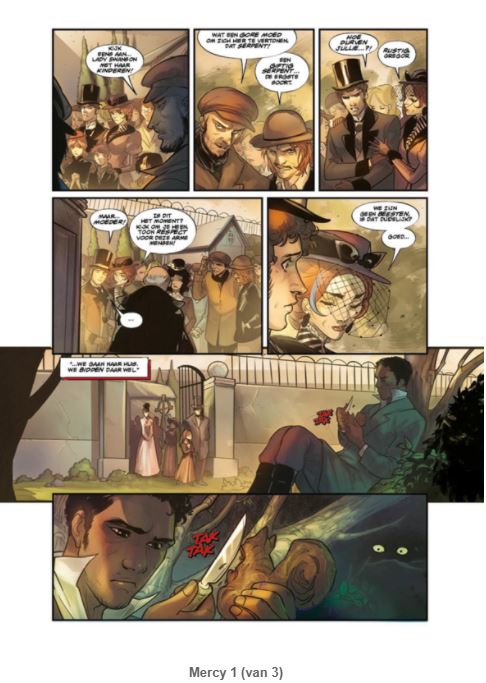 Hoe ver kan je veranderen door Liefde? Alaska, eind 19e eeuw. Hellaine, een nobel uitziende vrouw van mysterieuze afkomst, arriveert in het kleine stadje Woodsburg, niet ver van het epicentrum van de Klondike Gold Rush, Dawson City. Ze wil de concessie van een vervallen mijn kopen. Want wat niet iedereen weet, is dat onder het puin een ondergronds meer schuilgaat dat toegang geeft tot een andere dimensie bevolkt door nachtmerrieachtige wezens. Hellaine is eigenlijk een van die wezens. En natuurlijk heeft ze een plan. Een plan dat op zijn kop wordt gezet door de verschijning van Rory, een jonge Indiaanse wees voor wie Hellaine genegenheid zal krijgen nadat ze haar uit de klauwen van haar aanvaller heeft verlost ... Gemaakt door Mirka Andolfo (Contro Natura), Mercy is het verhaal van een soort vrouwelijke Dracula die verlossing zal vinden dankzij de onvoorwaardelijke liefde van een geadopteerde dochter die ze per ongeluk zal ontmoeten. Een resoluut klassieke maar moderne romantische fabel, waarin het verre noorden het toneel wordt van een fantastisch horrorverhaal in de buurt van Interview with a vampire. MIRKA ANDOLFO presenteert een sensuele victoriaanse gotische horror over anders zijn, verdoemenis, verlossing en wat het betekent om een monster te zijn. En dat in een horrorverhaal dat perfect is voor fans van Penny Dreadful, Crimson Peak, The Alienist en Dark Shadows. Wanneer het kalme mijndorp Woodsburgh wordt verstoord door een reeks brute moorden, is de nederzetting in rep en roer. En terwijl de eerste sneeuw de chaos bedekt met een witte deken, arriveert een mysterieuze vrouw in het zwart, die een totaal ander soort onrust veroorzaakt. Maar wie is Lady Helène eigenlijk? En wat is haar geheime agenda?