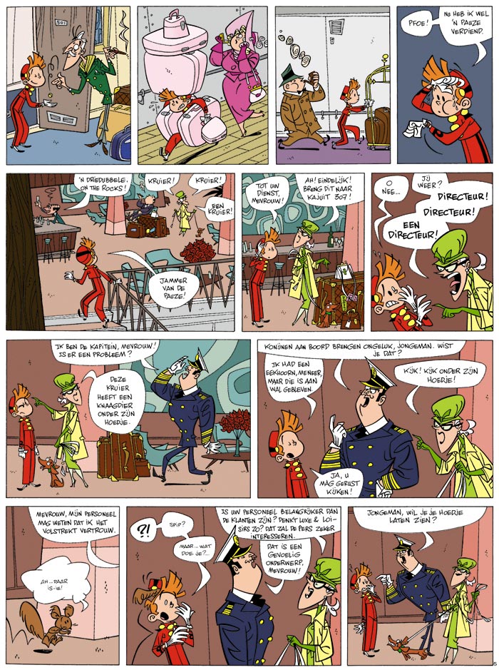 Te vergelijken met de Marx Brothers op de Titanic in een swingend sixtiessfeertje ... Restructureren is van alle tijden, en Robbedoes moet uit het Moustichotel weg. Hij gaat aan de slag op een oceaanstomer, maar zijn eerste (en meteen laatste) reis wordt flink in de war gestuurd... Een dolgedraaide eekhoorn, een fotograaf-reporter op jacht naar hot news, een oude en verwarde wetenschapper die onderzoek voert naar de verdwijning van een schip en stinkend rijke passagiers die gillen bij elke golfslag.