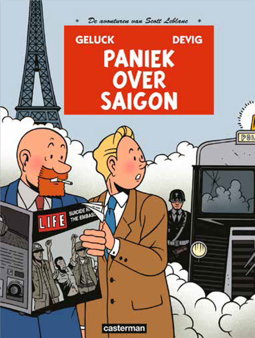 Ook te verkrijgen in Promopakket => De Avonturen van Scott Leblanc stripdeal 1968. De sympathieke Scott Leblanc, een jongeman die blaakt van enthousiasme, is reporter bij het tijdschrift Bien en vue, waar hij de drijvende kracht is achter de rubriek 'Dieren en sterren'. Hij is er echter van overtuigd dat hij alles van een grote reporter in zich heeft en voorbestemd is voor spectaculaire successen. Tegen de achtergrond van de studentenopstand in Parijs kruisen Scott en professor Moleskine het pad van een raadselachtige Vietnamees, meneer Le, net voor hij midden op straat wordt vermoord. Klaarblijkelijk staat zijn dood in verband met het conflict dat in Vietnam aan de gang is. Het duo is vastbesloten om deze moord uit te spitten tot aan de bron en besluit op staande voet te vertrekken naar Saigon, een bekende bestemming voor Moleskine, die zelf ooit nog deel uitmaakte van de Franse troepen in Vietnam ... Energie, humor, een heldere lijn en een knipoog naar de actualiteit van de sixties: het nieuwe avontuur van het onweerstaanbare personage dat door Geluck en Devig gecreëerd werd.