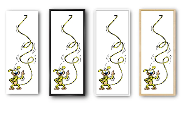 Onze Amerikaanse baklijsten in "L"-profiel worden met de hand in Frankrijk gemaakt van massief hout. Deze frames bieden een elegante esthetiek zonder af te leiden van het kunstwerk. Ze zijn verkrijgbaar in verschillende afwerkingen om te passen bij de sfeer van stripverhalen.