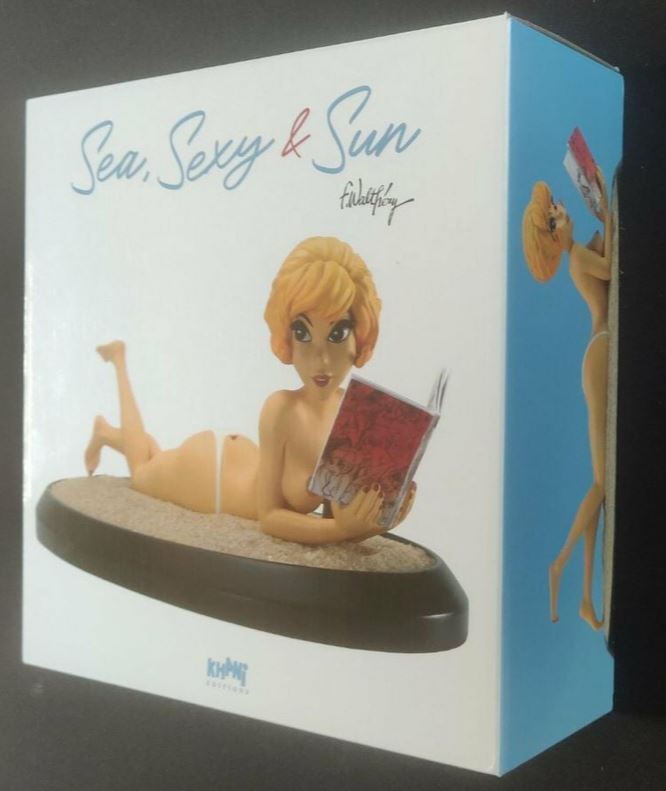 Het betreft het beeldje bestemd voor de Franstalige markt. opgepast we hebben er maar één meer. Als vervolg op Natasja's vijftigste verjaardag in 2020 liet Khani een beeldje van een zonnebadende Natasja vervaardigen onder de titel Sea, Sexy & Sun. De oplage bedraagt 300 exemplaren waarvan er 100 voor de Nederlandstalige markt zijn bestemd met een Nederlandstalig certificaat, gesigneerd door François Walthéry. Natasja met monokini meet 20 x 4,5 x 8 centimeter. De sokkel — met écht zand! — is 22,5 x 13 x 1,5 centimeter groot. Natasja leest ook een boek waarin dertien exclusief voor deze uitgave gemaakte tekeningen staan. Je kan het dus uit haar handen grissen om Hetz elf te bekijken. Dat kleinood heeft de afmetingen 3,5 x 2,5 x 0,3 centimeter. De verpakkingsdoos is 30 x 30 x 10,5 centimeter groot en het geheel weegt net geen kilogram. Er hoort ook nog een triptiek bij die als achtergrond dient.