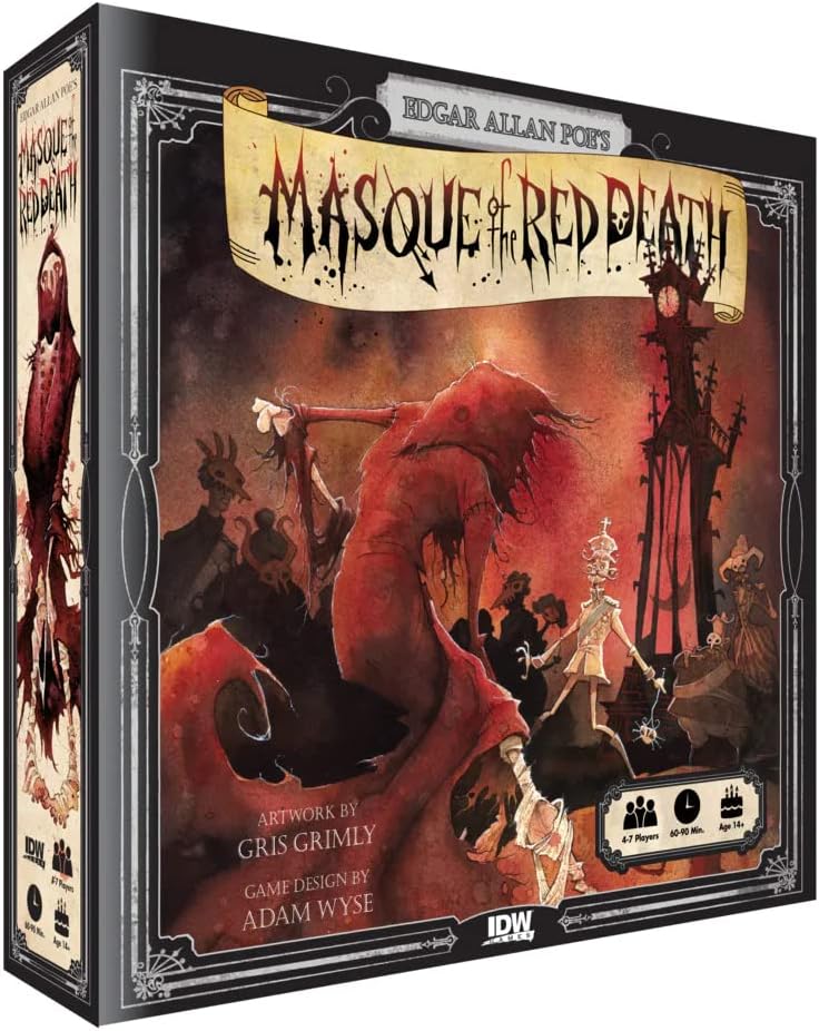 Based on Edgar Allan Poe's sinister story, Masque of the red death pits you and up to 6 of your friends against each other as you hobnob with the Prince. But disaster strikes at midnight. You must baloance your actions carefully between currying the Prince's favor and discovering which rooms the Red death will visit. After all, having the highest social standing only matters if you survive ...