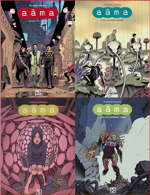 promopakket met de vier delen Aâma blijkt zich ontwikkeld te hebben tot een unieke, maar allesbedreigende levensvorm. Of is Aâma de ultieme redding voor alle leven? De zinderende finale van dit grensverleggende sciencefictionverhaal in een extra lange aflevering! Deze reeks werd in Angoulême 2013 bekroond als beste stripreeks. Terecht, want Aâma is een geweldig stripverhaal ... Het kan zich zelfs moeiteloos meten met het werk van de beste sciencefictionschrijvers. Auteur Frederik Peeters (Geneve, 1974) is namelijk een rasverteller, maar ook eentje met diepgang. Dat bewees hij al eerder met onder andere Lupus, Koma en het verfilmde Blauwe pillen ...