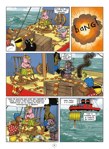 Petzi et ses amis naviguent à bord du Mary quand ils font la connaissance d'un jeune cochon artificier que sa maladresse va entrainer dans bien des déboires...