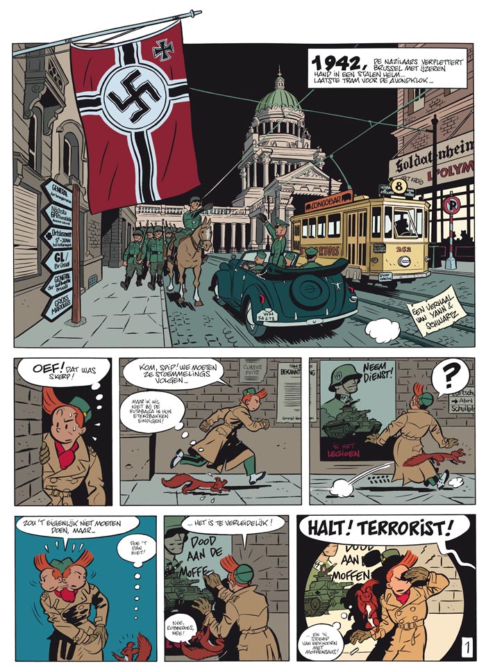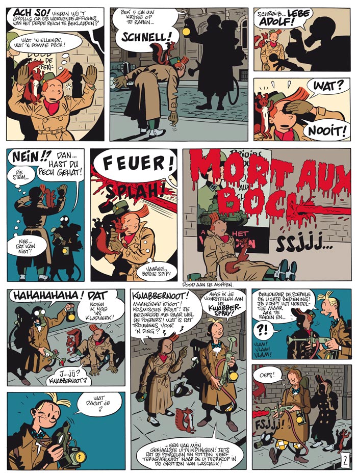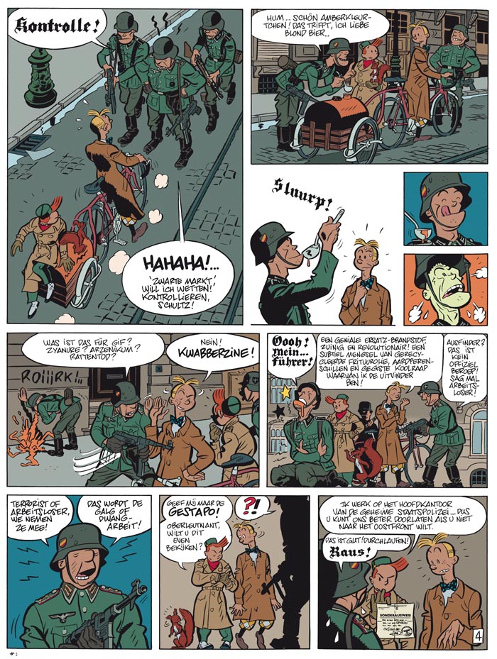 1942, de nazilaars verplettert Brussel met ijzeren hand in een stalen helm... Robbedoes, die als piccolo werkt in het Moustic hotel dat is gevorderd door de Duitse bezetter en Kwabbernoot, die schrijft voor een krant met 'bruine' sympathieën, verwijten elkaar te heulen met de vijand. Wat Kwabbernoot níét weet, is dat Robbedoes onder de codenaam 'Waalse eekhoorn' een actief lid is van het verzet. Kolonel von Knochen wil overigens net nu een van de belangrijke Brusselse verzetsgroepen ontmaskeren. Zal Robbedoes dat plan kunnen verijdelen? En zal hij erin slagen uit de klauwen van de nazi's te blijven?