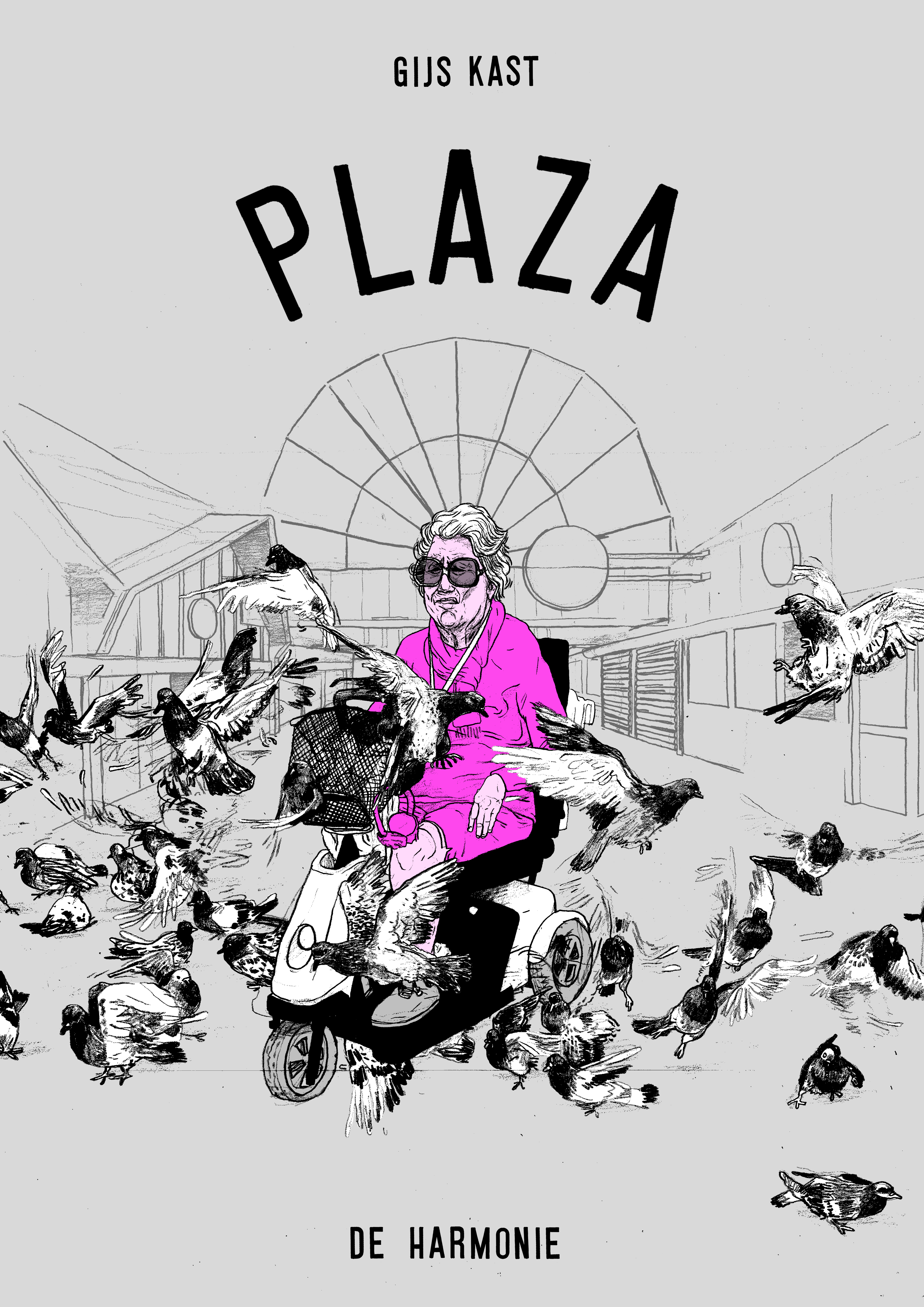In de zomer van 2017 portretteerde tekenaar Gijs Kast voor Het Parool de winkelcentra van Amsterdam. Hij reisde door de stad, van oost naar west, van noord naar zuid. Van het Osdorpplein, naar het Gelderlandplein, en via Magna Plaza naar Boven 't IJ. Het leverde een treffende reeks portretten op, variërend van huisvrouwen, hangjongeren en bejaarden tot scootmobielen en duiven. In zijn persoonlijke winkelcentrum Plaza laat Kast de rafelranden van onze samenleving zien, zonder te oordelen, maar vol verwondering en met humor. Gijs Kast debuteerde bij De Harmonie met Basibos (2012), een getekende documentaire over Istanbul. Sindsdien mag hij NRC Handelsblad, Het Parool, De Morgen en diverse andere kranten en tijdschriften tot zijn opdrachtgevers rekenen.