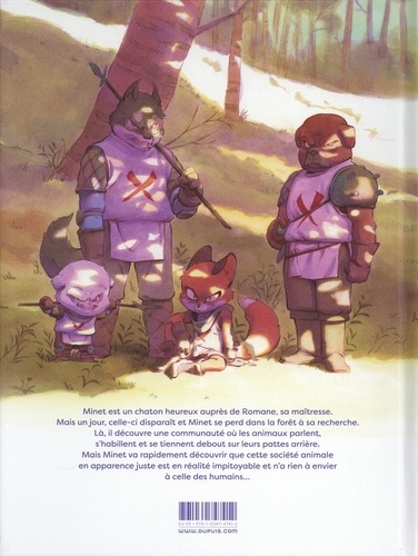 Un jeune chaton, qui ne pense qu'à manger et à jouer avec Romane, sa jeune maîtresse, se retrouve un matin seul au monde : ses maîtres ont quitté leur maison de vacances. Désemparé, il se perd dans la forêt. Au matin, il est réveillé par un lapin et un écureuil qui parlent et se comportent tout à fait comme des humains. Et qui, peu sympathiquement, le baptisent " Poltron-Minet ". Ils décident néanmoins de l'emmener chez " Chat-Pourri ", un vieux matou qui, lui aussi, prétend avoir dans sa jeunesse " apprivoisé un maître ". Mais en tant que " naturel ", il ne peut être intégré à la communauté avant d'avoir passé " l'épreuve du roi " et convaincu ainsi ses nouveaux congénères qu'il peut s'adapter à son nouvel environnement malgré la souillure inévitable due à sa fréquentation des humains. Poltron va découvrir une société impitoyable qui n'a rien à envier à celle des humains et où il n'est vraiment pas le bienvenu. Cédric Mayen et Madd nous proposent un récit animalier assez dur, où les animaux n'ont rien à envier aux humains. Mais derrière cette civilisation anthropomorphe se cachent de terribles expérimentations génétiques.