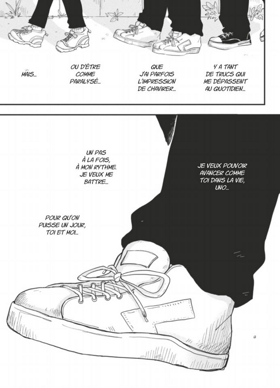 Ensemble, nous irons plus loin. En difficulté scolaire depuis des années, Yamato Kobayashi se donne des airs de mauvais garçon et enchaîne les petits boulots en dehors des heures de cours, sans jamais tenir sur la durée. Jusqu'au jour où Keisuke Uno est transféré dans sa classe... Pris de panique lorsqu'on lui parle avec trop d'insistance, incapable de faire plusieurs choses à la fois, ce lycéen pas comme les autres peine à gérer les aspects les plus "normaux" de la vie quotidienne, mais il s'accroche grâce à une multitude d'astuces qui lui permettent d'avancer. Kobayashi, qui se reconnaît en Uno, tente alors de changer, lui aussi...