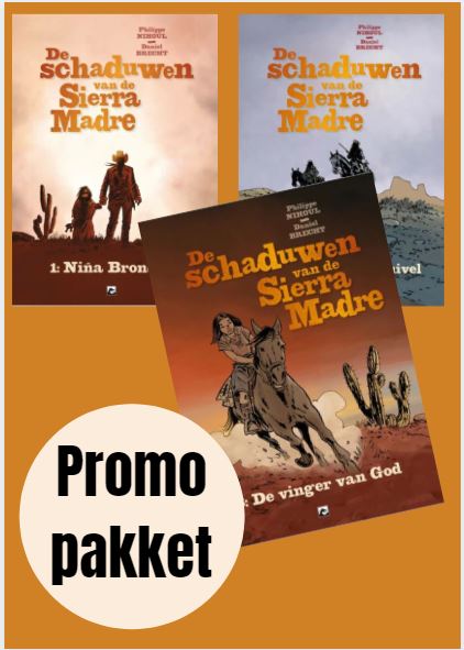 PROMOPAKKET MET DIT VOLLEDIG VERHAAL IN DRIE DELEN SOFTCOVER 1918. De jonge mormoon Moroni Fenn is zwaar getraumatiseerd door de Eerste Wereldoorlog. Hij wordt naar Mexico gestuurd om de veiligheid van de nederzettingen daar te verzekeren. Moroni komt een reizend circus tegen. Al snel beseft hij dat de enige attractie van de show een klein tienjarig meisje is, dat als een dier in een kooi wordt gehouden. 'Nina Bronca' (het wilde meisje). spreekt niet (althans geen Spaans of Engels) en valt iedereen aan die haar benadert. Dat gebaar zorgt ervoor dat de spoken uit zijn verleden herleven. En hij dacht nog wel dat hij ze begraven had in het oude Europa! De held in dit verhaal draagt zijn wonden en trauma's mee van de veldslagen van de 'Grote Oorlog', die hij probeert te vergeten met alcohol. Dat maakt hem een nogal vreemde mormoon. En wat deze serie ook origineel maakt, is dat het verhaal zich afspeelt in een tijd lang na die van traditionele westerns: aan het begin van de twintigste eeuw in Salt Lake City. De tekeningen en de kleuren van deze prachtige, uitgedroogde landschappen zijn verzadigd van zon, stof en cactussen. Het decor van vele mysteries rond de laatste vrije Apaches en de mormonen.