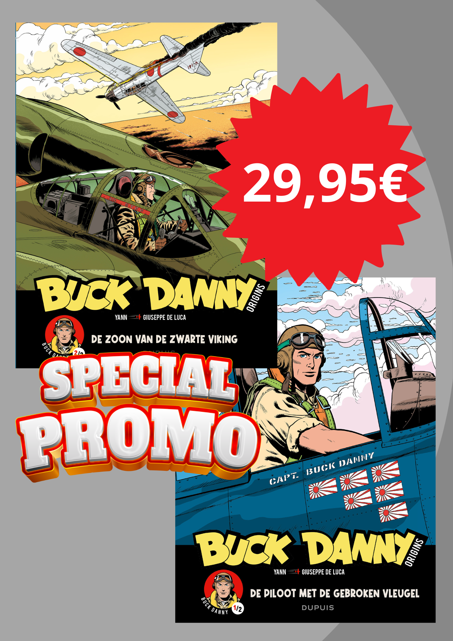 Speciale Promotie deel 1 en 2 voor de prijs van slechts 29,95 euro ipv 35,99 euro! Beperkte voorraad!!!!! Buck Danny blijft één van de populairste stripreeksen in het genre vliegtuigstrips van deze tijd. Een nieuwe reeks bestaande uit twee delen met daarin een verhaal over het verleden van Buck Danny. getekend door De Luca Guiseppe en geschreven door Yann. Verschijnt ook in softcover Juni 1942. De jonge Buck Danny meldt zich aan als Wildcat-piloot aan boord van het vliegdekschip USS Enterprise na de verraderlijke Japanse aanval op Pearl Harbor. Buck krijgt toelating zijn ouders en zijn jongere broer, ‘Microbe’, te bezoeken, maar verneemt dat zijn vader gestorven is... Er is maar één oplossing voor de piloot met het gebroken hart: terugkeren naar zijn eenheid om aan zijn leed te ontsnappen. Maar al snel blijkt dat dat geen goed idee was. Nadat zijn Wildcat is neergeschoten, bevindt Buck zich alleen in het midden van de Stille Oceaan, op een opblaasbare boot en onder een meedogenloze zon. Terwijl zijn herinneringen hem overspoelen, komt een Japanse onderzeeër boven water... Hoe is Buck Danny 'Buck Danny' geworden? De oorsprong van een van de grootste helden van de 9e kunst zal eindelijk onthuld worden! Waarin ligt de oorsprong van Buck Danny's passie voor de luchtvaart? Wat als deze passie een diep geheim verbergt, of erger nog, een wonde uit zijn jeugd? De Tweede Wereldoorlog is in volle gang in de Stille Oceaan. Buck Danny blinkt enorm uit door zijn talent en inzet. Terwijl de wrede gevechten voortduren, zal Buck op het einde van zijn jeugd een rondreizend circus ontdekken, de eerste keer de sensatie van het vliegen voelen en zijn eerste liefdesrelatie met de mooie MOIRA beleven. Dan komt hij te weten dat zijn vader zich tijdens de Eerste Wereldoorlog schandelijk heeft gedragen. Maar een cruciale missie om een Japanse generaal te neutraliseren zal Buck doen afvragen of hij zijn vader niet te hard heeft beoordeeld...