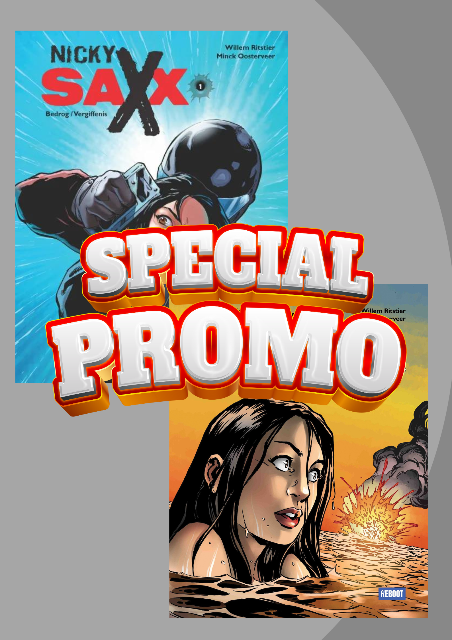 Kennismakingspakket met de eerste twee delen in softcover Samen met haar vriendin, Elja, beleeft Nicky Saxx de meest uiteenlopende avonturen. Vanuit haar vuurtoren runt ze Kamer 666, een bedrijf dat gespecialiseerd is in het oplossen van lastige zaken. In het eerste verhaal, “PSI”, krijgt onze heldin te maken met de verdwijning van Elja’s kleine nichtje, precies op de plek waar vijftien jaar eerder de jonge Timmy verdwenen is. Dit alles speelt zich af rondom een mysterieuze grot, waarin misschien wel een gruwelijk monster huist. In “ONKRUID” verloopt Nicky’s zeilvakantie heel wat minder rustig dan ze zich voorgesteld heeft. Ze wordt beschoten, belandt op een eiland waar criminelen de scepter zwaaien en heeft al haar moed en vindingrijkheid nodig om heelhuids te kunnen ontsnappen. Om lezers van zowel het eerste uur als de jongere generatie kennis te laten maken met een reboot van de stoere Nicky Saxx, heeft Reboot Comics de zwart-witte krantenstrip van Minck Oosterveer en Willem Ritstier volledig ingekleurd en van nieuwe lettering voorzien.