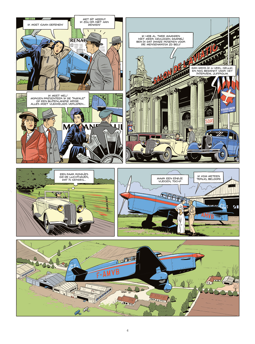 Hélène Boucher (23 mei 1908 - 30 november 1934) was een jonge vrouw met een passie voor luchtvaart, een vergeten heldin die tijdens haar blitzcarrière een stempel drukte op haar tijd. In enkele jaren scheerde ze in zowat alle luchtvaartdisciplines de hoogste toppen: luchtaanvallen, luchtacrobatie, hoogte- en snelheidsrecords, ... 'Sommige roemrijke sporen die de hemel doorkruisen kunnen door niets of niemand worden uitgewist. Sommige sterren schijnen zo hoog boven de aarde dat hun licht ons nog steeds bereikt, ook al zijn ze al duizenden jaren uitgedoofd. Zo'n ster is Hélène Boucher.' - Hélène Boucher, pilote de France - René Chambe, uitg. Baudinière, 1937. Prachtige biografie over een vergeten helding, door de tekenaar van Hemel in strijd.
