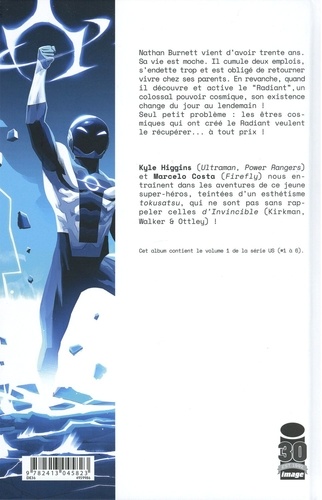 Nathan Burnett vient d'avoir trente ans. Sa vie est moche. Il cumule deux emplois, s'endette trop et est obligé de retourner vivre chez ses parents. En revanche, quand il découvre et active le Radiant , un colossal pouvoir cosmique, son existence change du jour au lendemain ! Seul petit problème : les êtres cosmiques qui ont créé le Radiant veulent le récupérer... à tout prix !